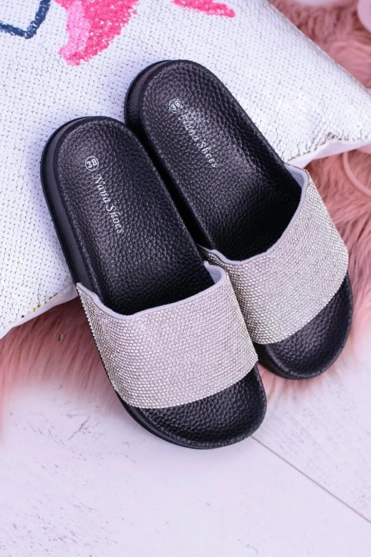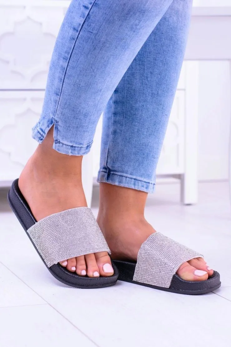 Damskie Boto Damskie Klapki Z Cyrkoniami MadameCristal Czarne