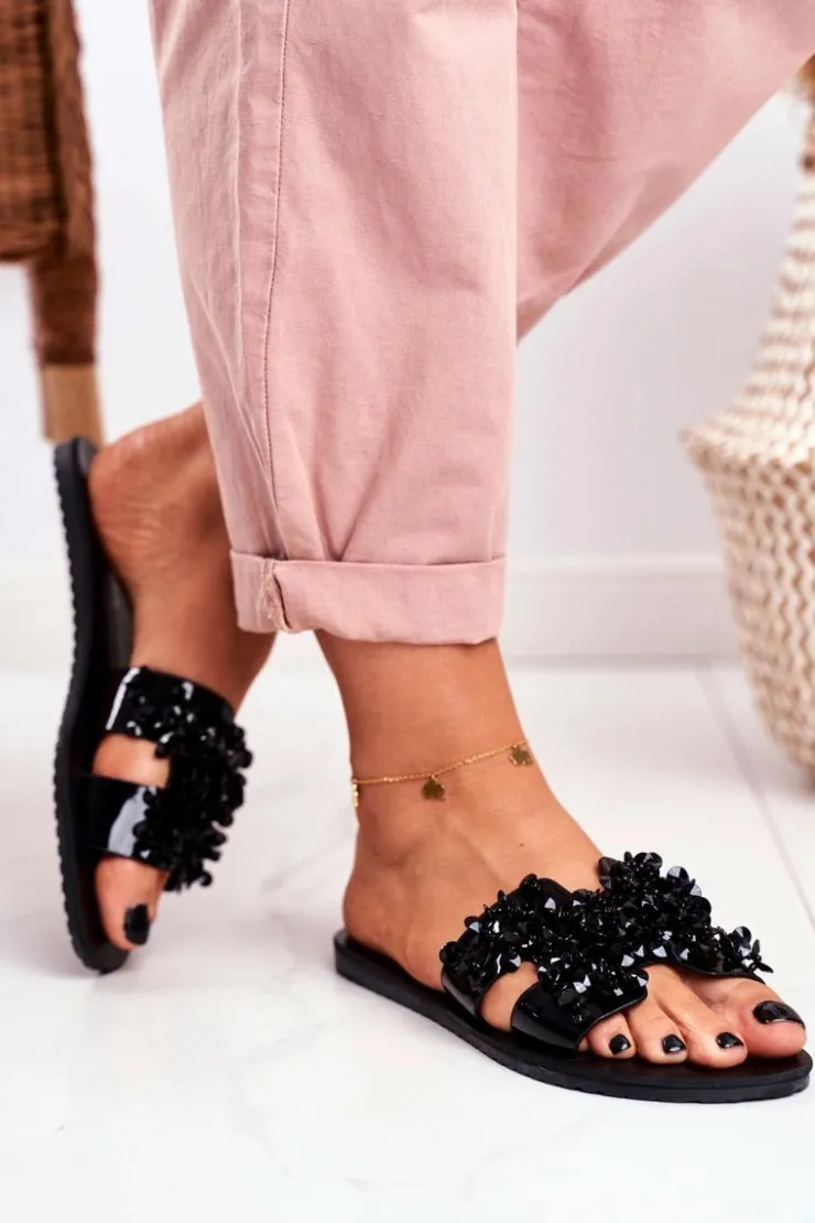 Clearance Boto Damskie Skórzane Klapki Z Ozdobą Czarne Roysa