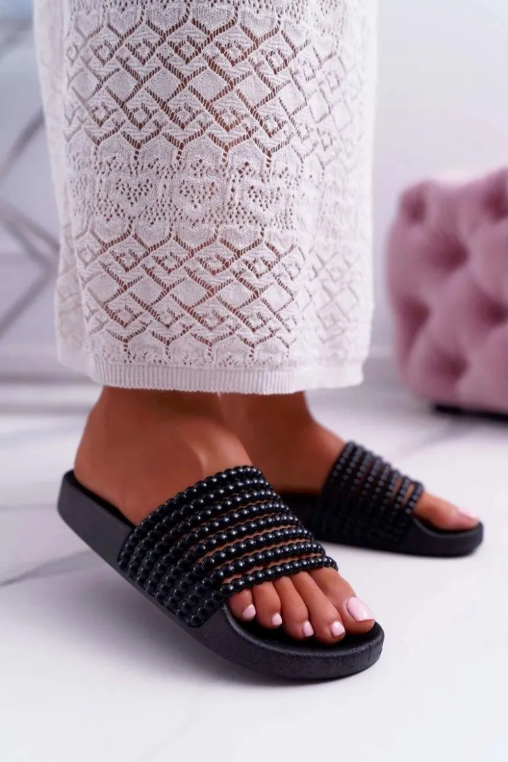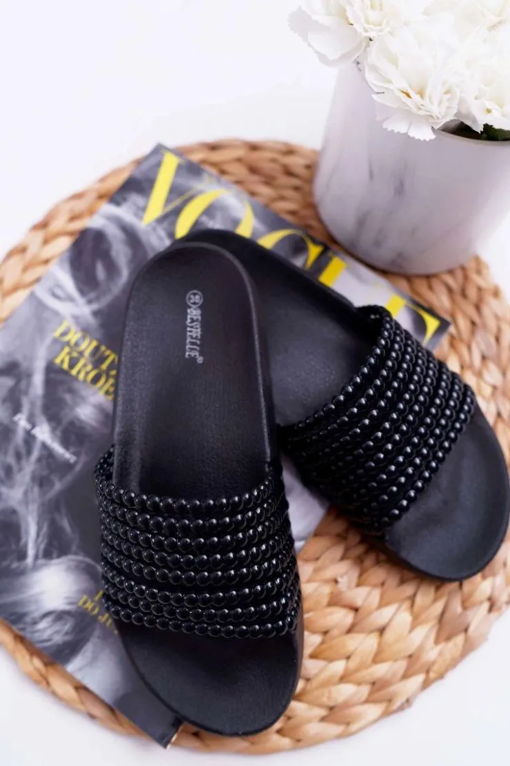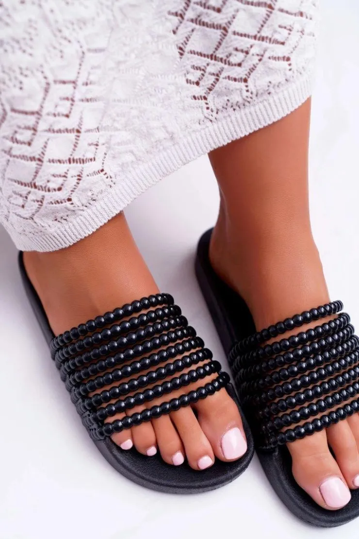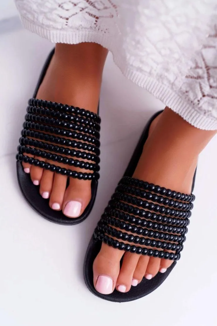 Damskie Boto Damskie Klapki z Koralikami Czarne Elavi