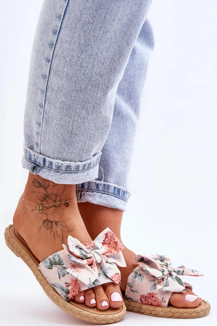 Damskie Boto Damskie Klapki Z Materiałową Kokardą Beżowe Blossom