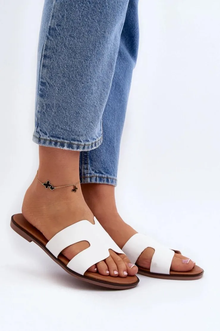 Klapki to idealna propozycja dla osób poszukujących uniwersalnego obuwia na lato. Wykonane z eko skóry. Płaski obcas gwarantuje wygodę podczas noszenia, co jest szczególnie istotne podczas letnich spacerów czy wyjść na miasto. Klasyczny fason sprawia, że świetnie pasują do różnych letnich stylizacji! Przy wyborze rozmiaru prosimy sugerować się tabelą rozmiarów.