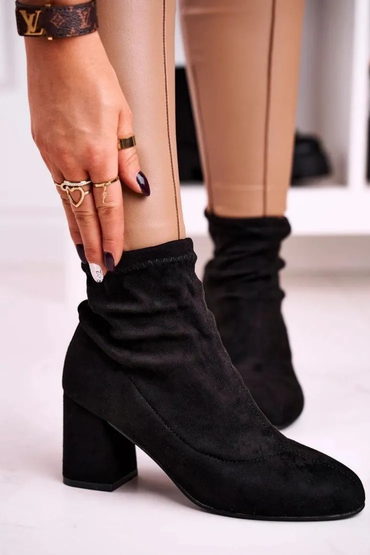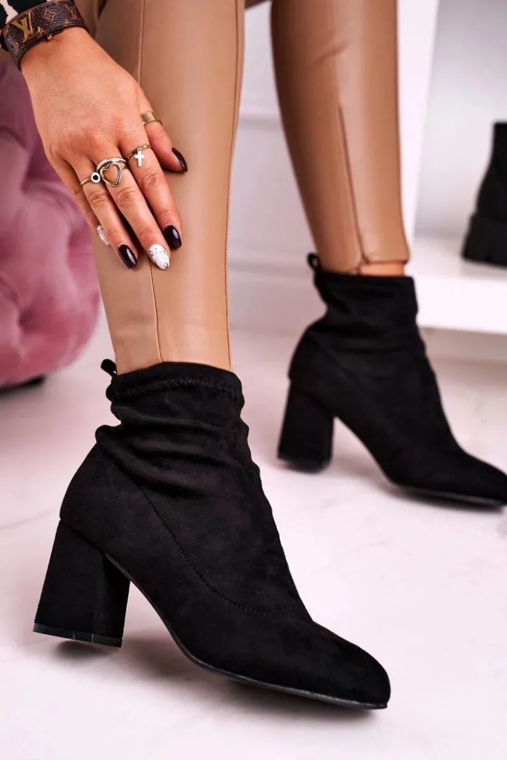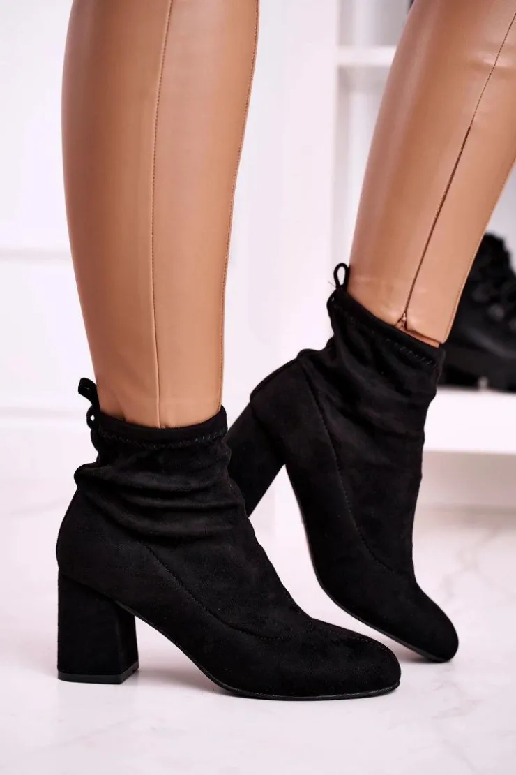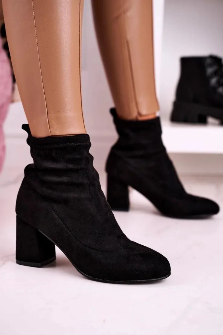 Damskie Boto Damskie Klasyczne Botki Na Słupku Zamszowe Czarne Ring