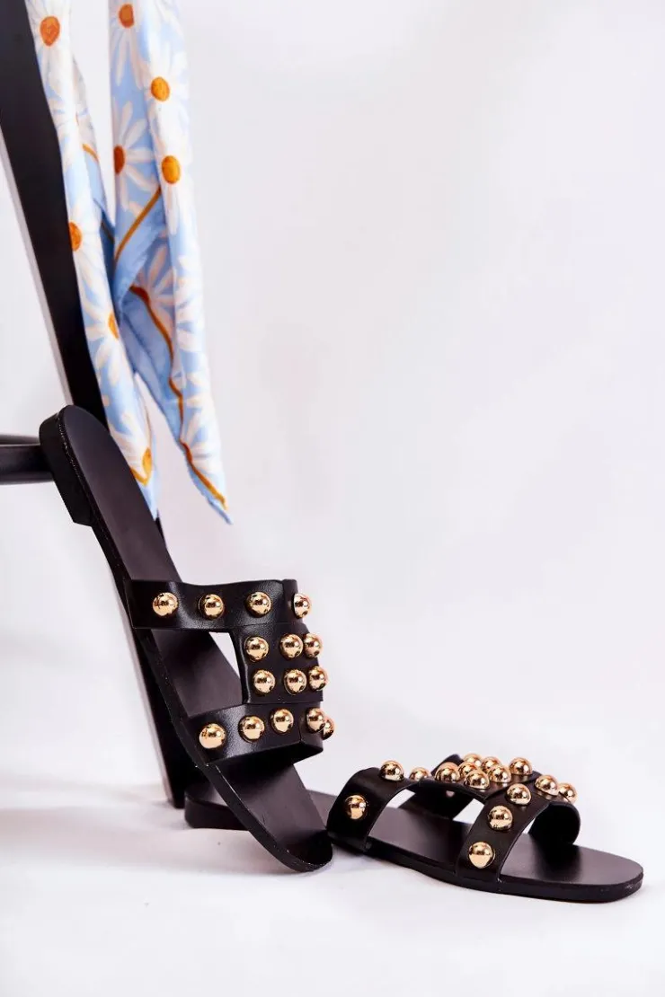 Klasyczne klapki damskie wykonane z eko skóry posiadają delikatne nacięcia na paskach. Zostały ozdobione lustrzanymi elementami w postaci półkul. Miękka wkładka wykonana z eko skóry. Buty zostały osadzone na płaskim obcasie. Podeszwa wykonana z gumowego tworzywa, która jest dodatkowo antypoślizgowa. Świetny model, który sprawdzi się podczas upalnych dni! Przy wyborze rozmiaru prosimy sugerować się tabelą rozmiarów.