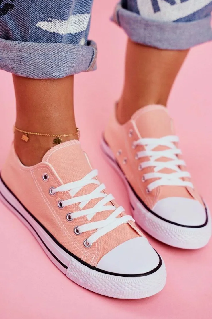 Klasyczne trampki damskie. Buty posiadają gumową podeszwę oraz miękką cholewkę. Ponadczasowy model, dostępny w wielu pięknych kolorach! Przy wyborze rozmiaru prosimy sugerować się tabelą rozmiarów.