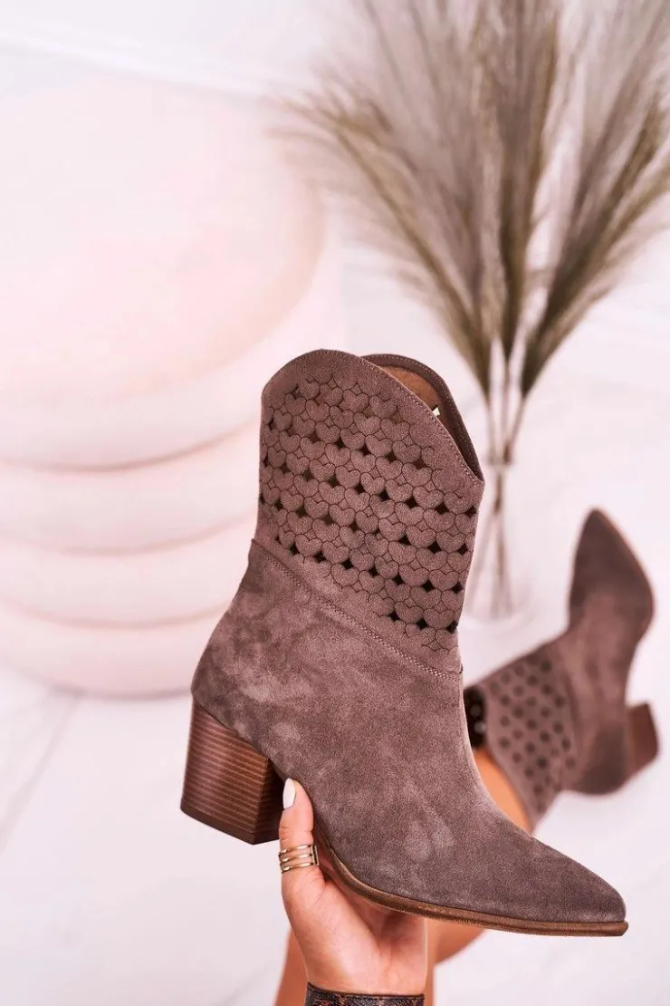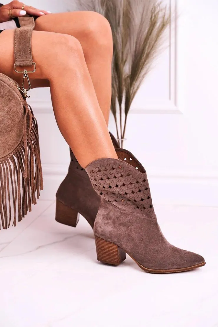 Damskie Boto Damskie Kowbojskie Botki Na Słupku Zamszowe Brązowe Emily