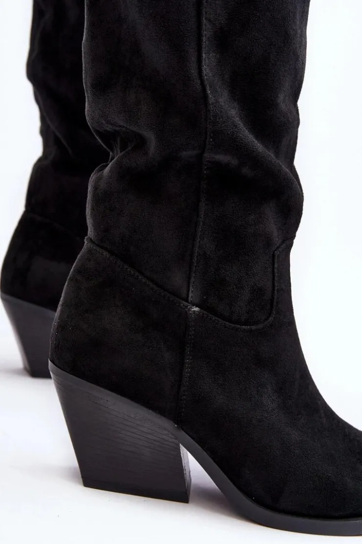 Modne kozaki-kowbojki uzupełnią wiele Twoich jesiennych stylizacji! Model wykonany z miłego eko zamszu. Kozaki są wsuwane, a także posiadają zamek na dole cholewki. Osadzone na obcasie w postaci słupka. Nosek w szpic optycznie wysmukli nogi. Kozaki posiadają usztywniany zapiętek. Koniecznie musisz je mieć! Przy wyborze rozmiaru prosimy sugerować się tabelą rozmiarów.