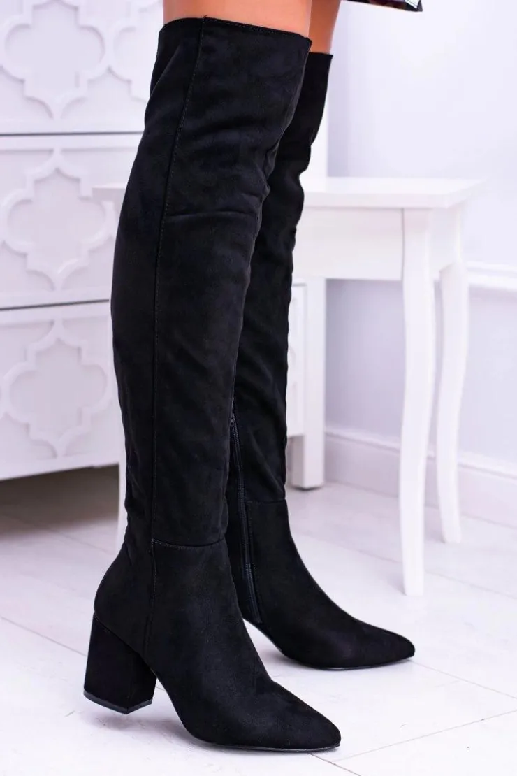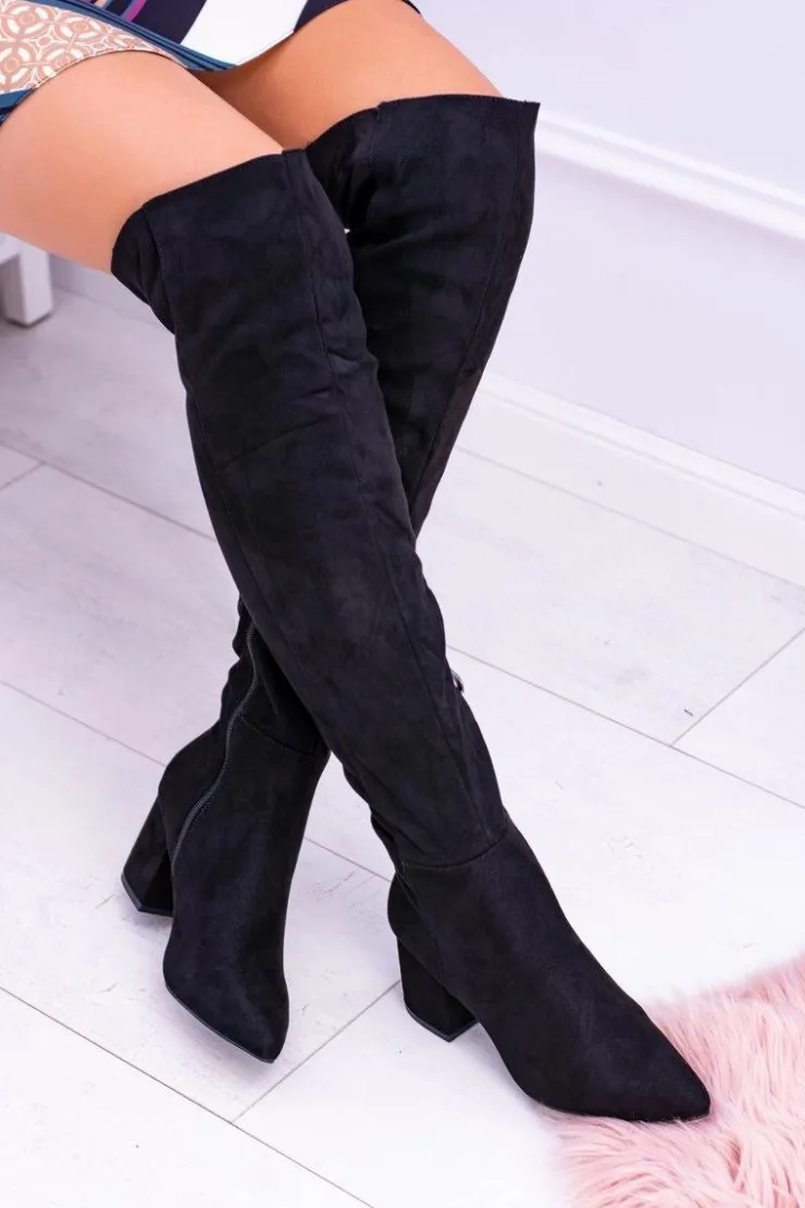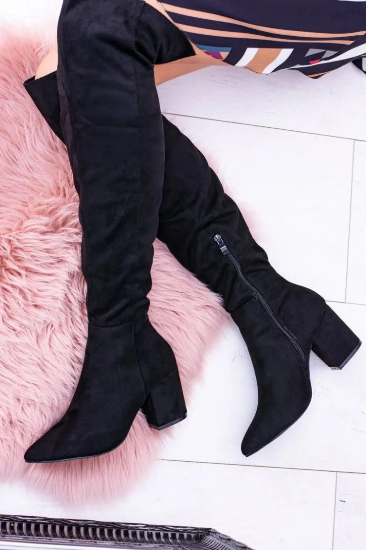 Damskie Boto Damskie Kozaki Za Kolano Zamszowe Czarne Feluni