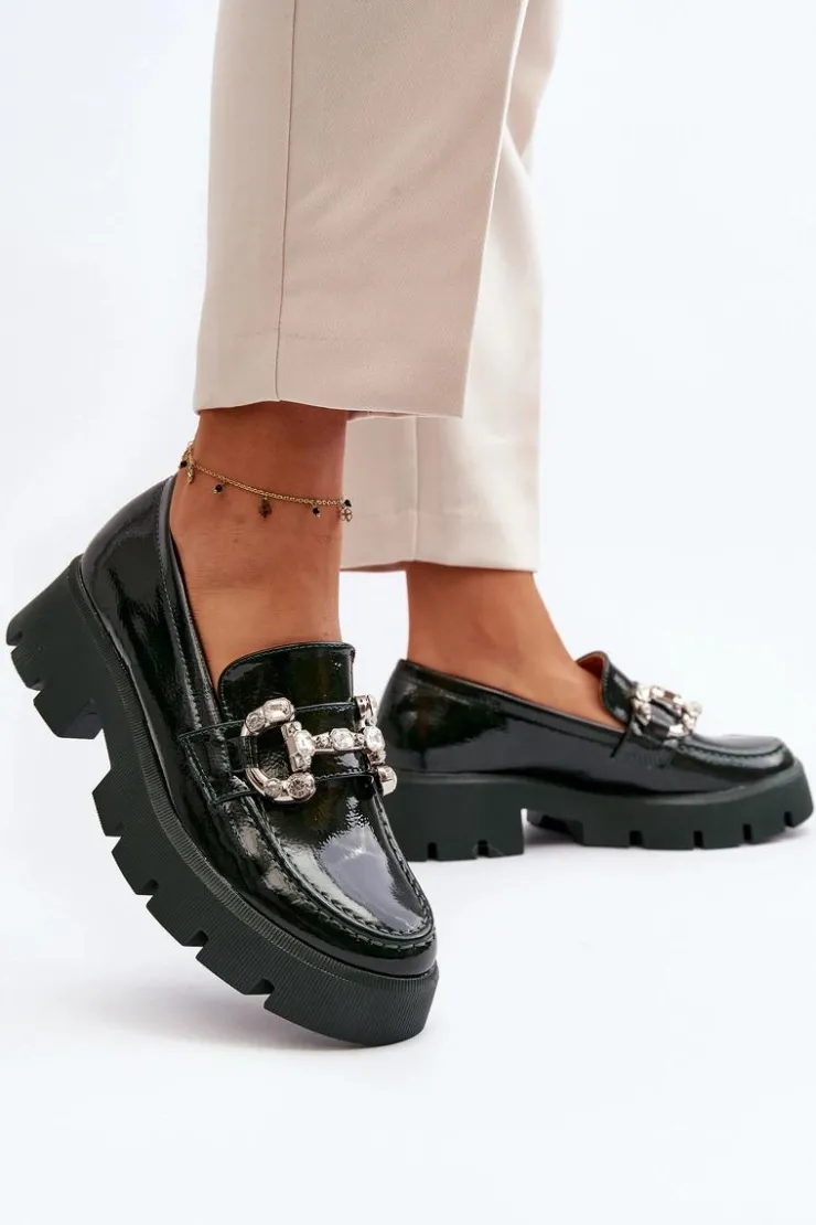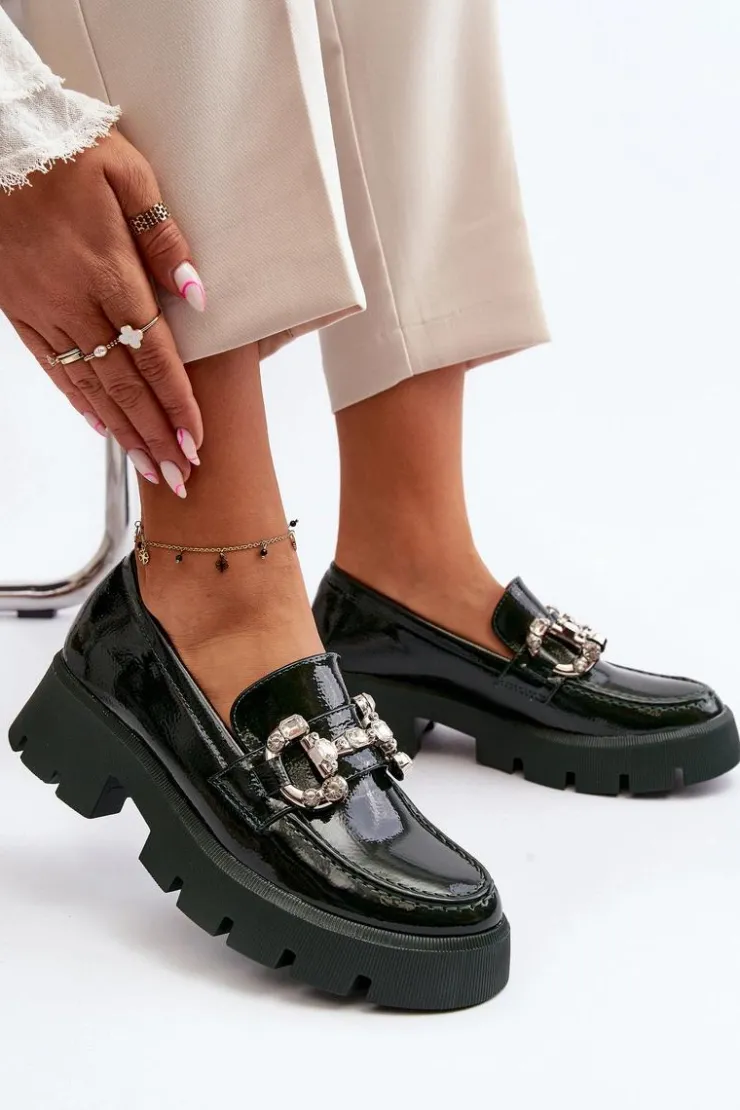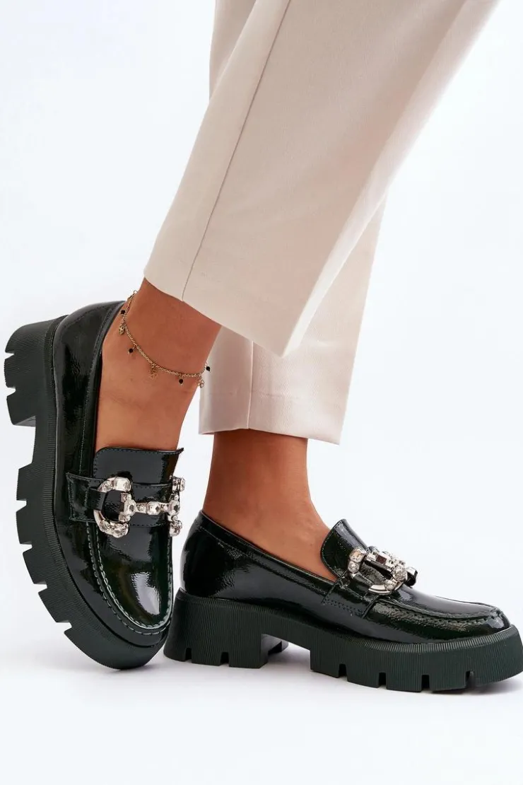 Damskie Boto Damskie Lakierowane Mokasyny Z Ozdobą Ciemnozielone Arsaba