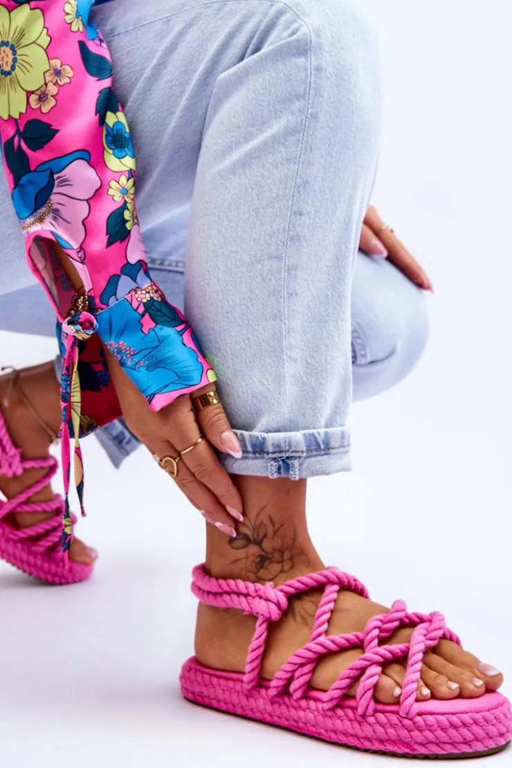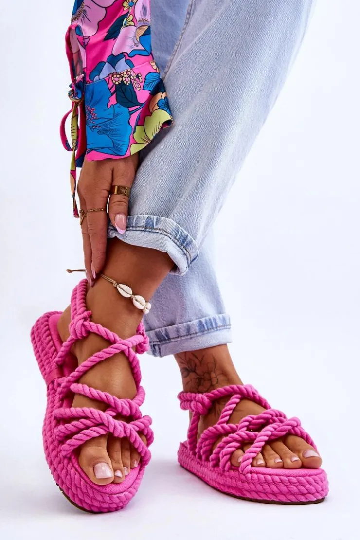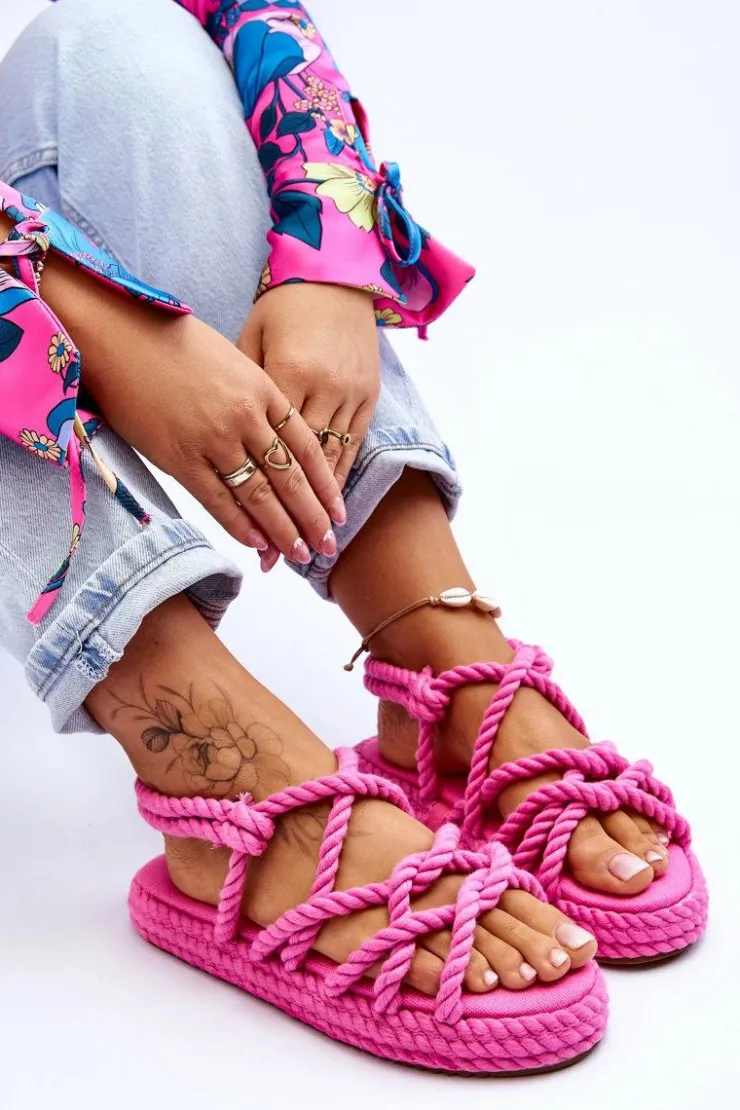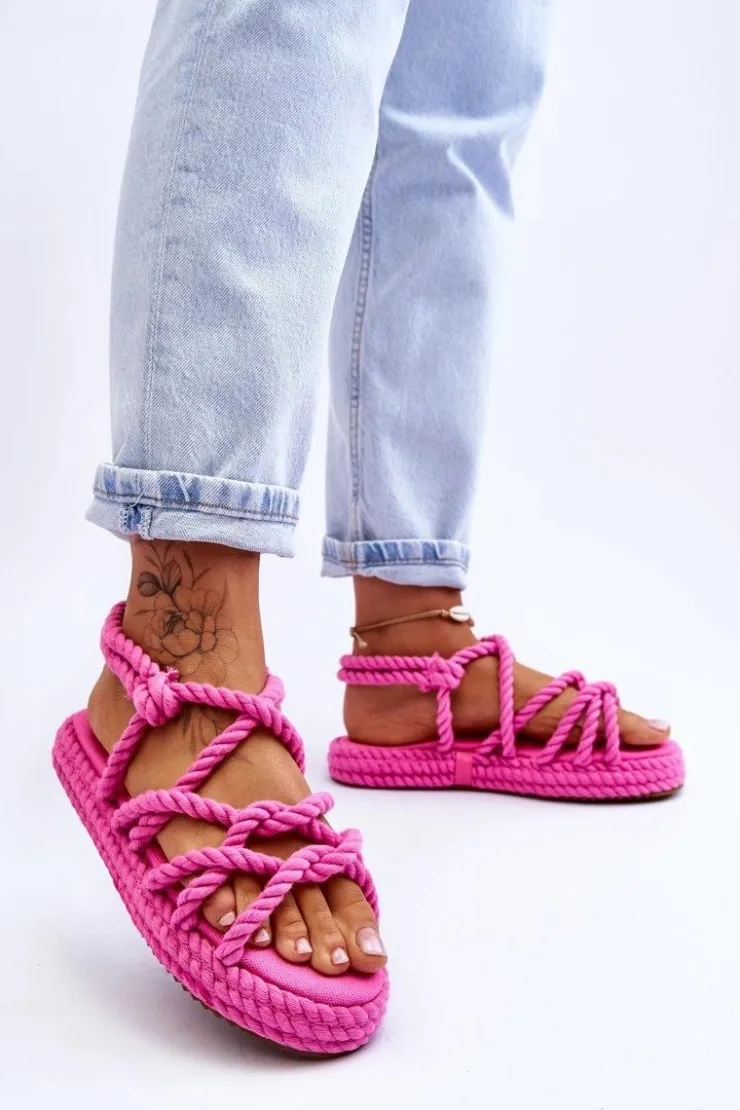 Wyjątkowe sandały damskie osadzone na masywnej platformie. Podeszwa w tych butach jest antypoślizgowa. Sandałki posiadają paseczki wykonane z plecionego, miękkiego sznurka. Model ten jest wsuwany. Sandałki są niezwykle wygodne i przewiewne. Posiadają wkładkę, która została wykonana z tkaniny i jest niezwykle komfortowa w użytkowaniu. Model ten posiada odkryty, zaokrąglony nosek. Przy wyborze rozmiaru prosimy sugerować się tabelą rozmiarów.