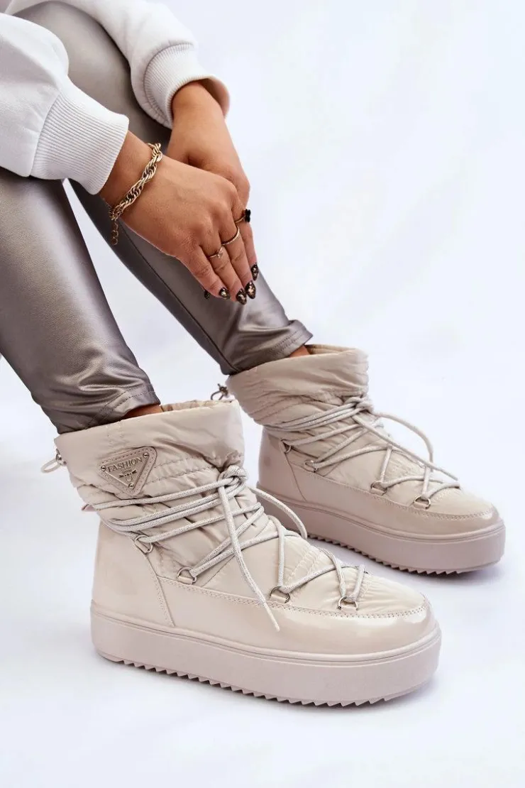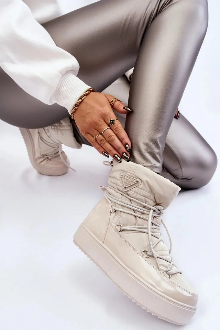 Damskie śniegowce zostały wykonane z materiałów odpornych na wiatr oraz mróz w połączeniu z eko skórą. Model wsuwany z dodatkowym sznurowaniem z przodu oraz ściągaczem u góry cholewki. Śniegowce zostały ocieplone miłym w dotyku futerkiem. Osadzone na platformie, która izoluje od zimnego i mokrego podłoża. Ten model powinien być właśnie Twój! Przy wyborze rozmiaru prosimy sugerować się tabelą rozmiarów.