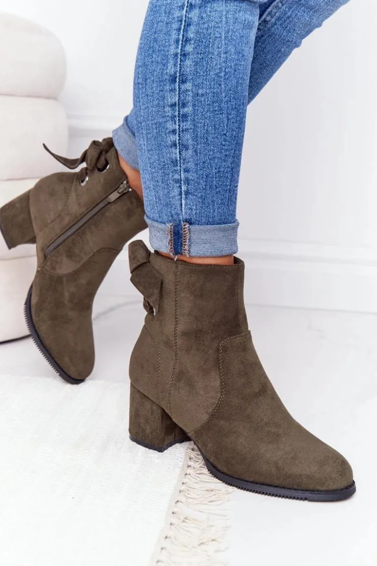 Damskie Boto Damskie Ocieplane Botki Na Słupku Zielone Kayla