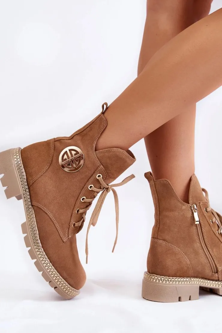Modne botki damskie zostały wykonane z wysokiej jakości naturalnej skóry. Model ten jest sznurowany, a także zapinany na suwak. Botki posiadają ocieplenie w postaci koca obuwniczego oraz usztywniany zapiętek. Osadzone na płaskim obcasie i platformie ze żłobieniami. Dodatkowo podeszwa została ozdobiona imitacją suwaka i jest antypoślizgowa.Przy wyborze rozmiaru prosimy sugerować się tabelą rozmiarów.