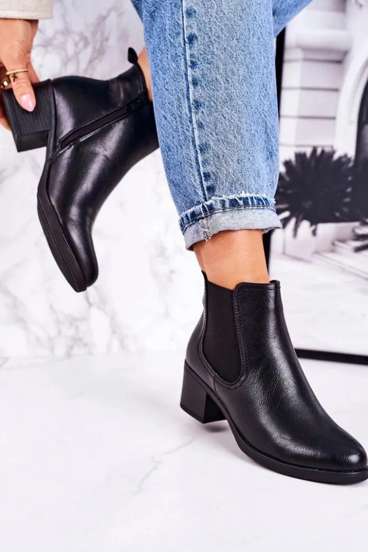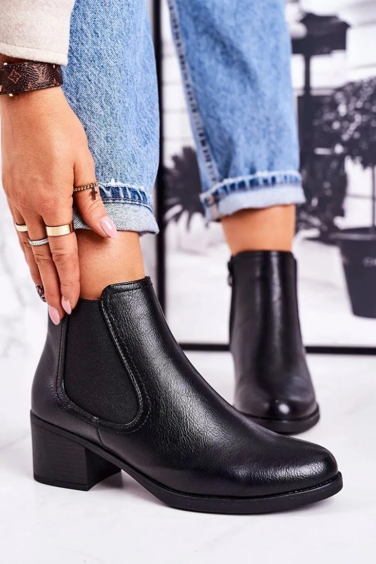 Damskie Boto Damskie Ocieplane Botki Sztyblety Na Obcasie Czarne Forevermore