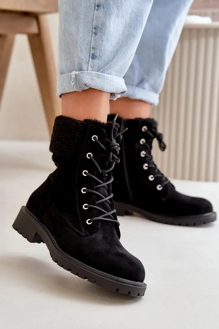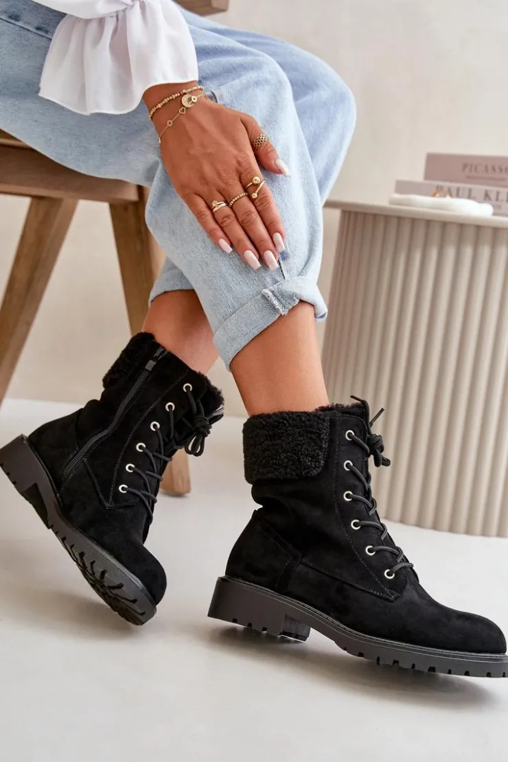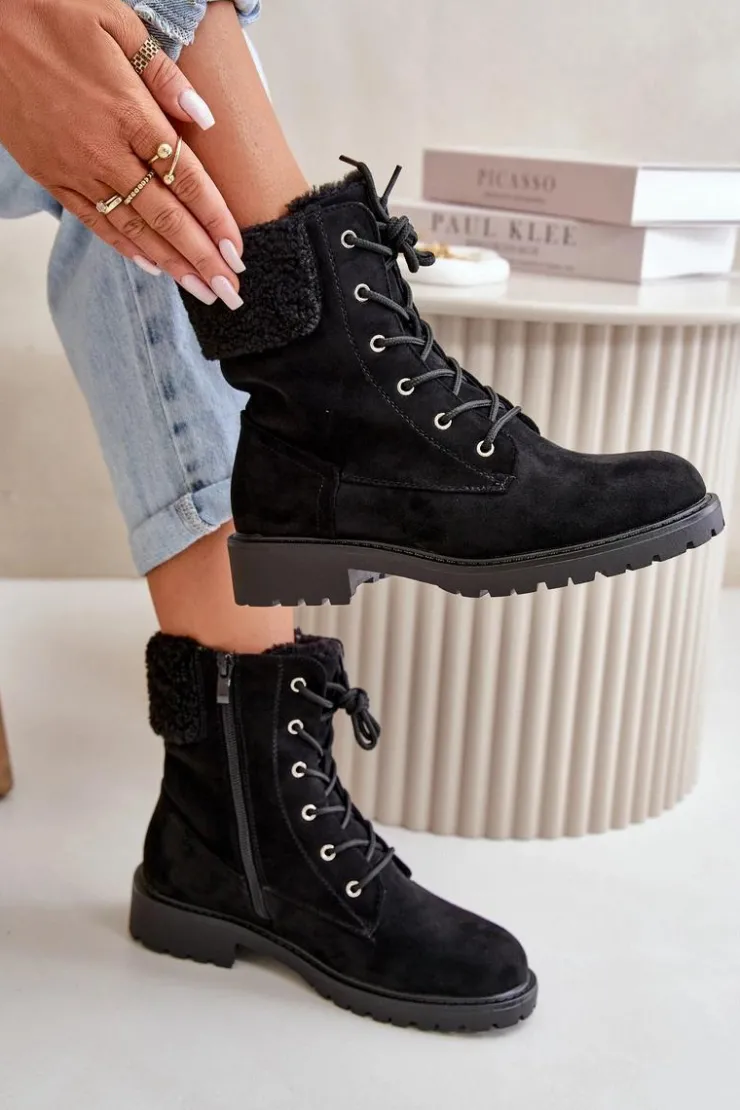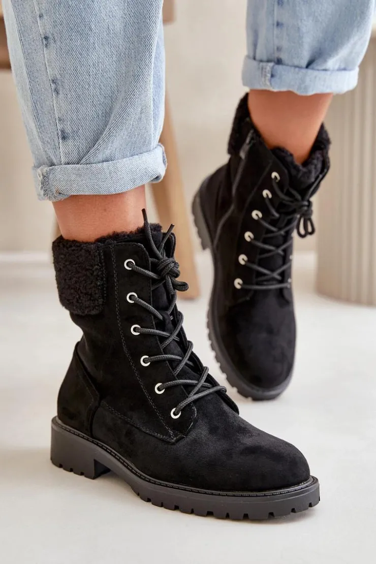 Damskie Boto Damskie Ocieplane Botki Workery Na Zamek Czarne Mivael