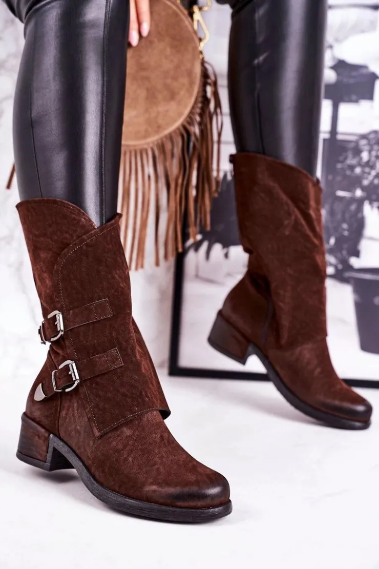 Damskie Boto Damskie Ocieplane Botki Z Klamrami Brązowe Cassidy