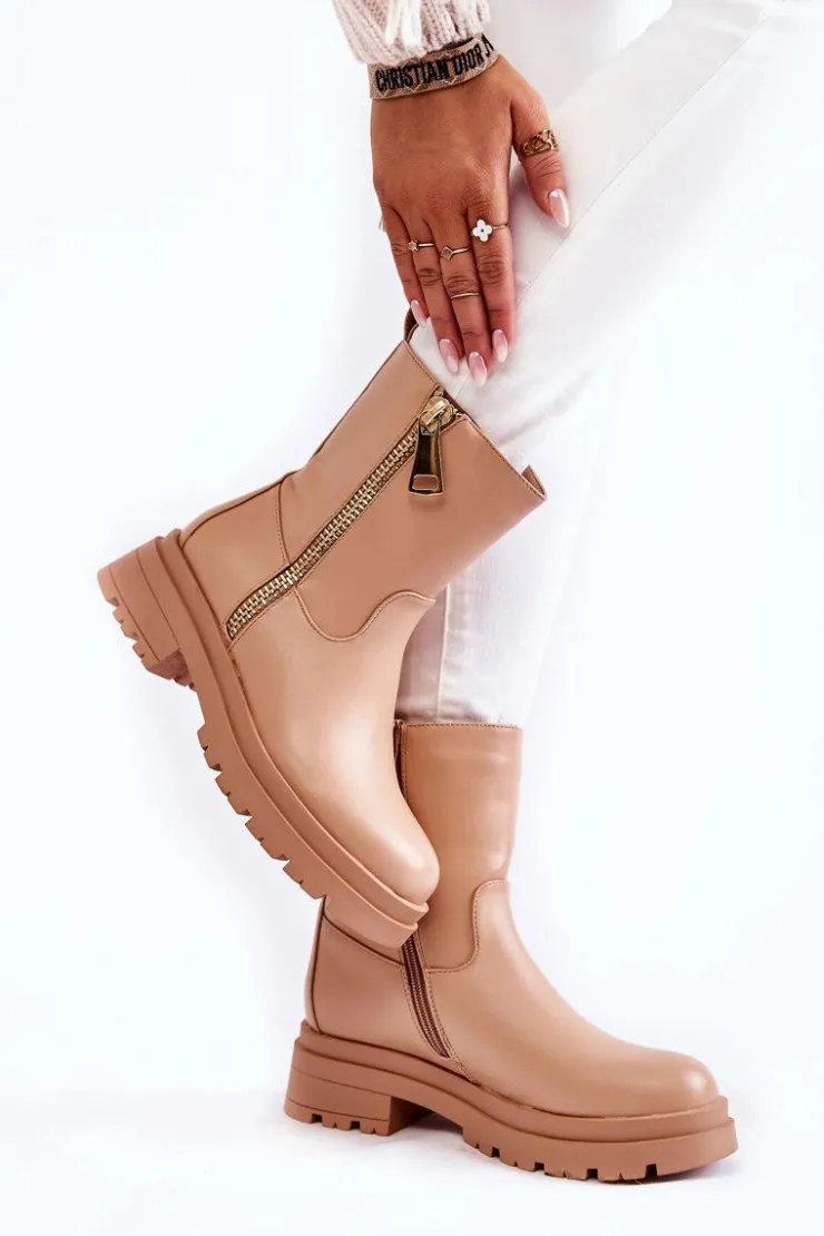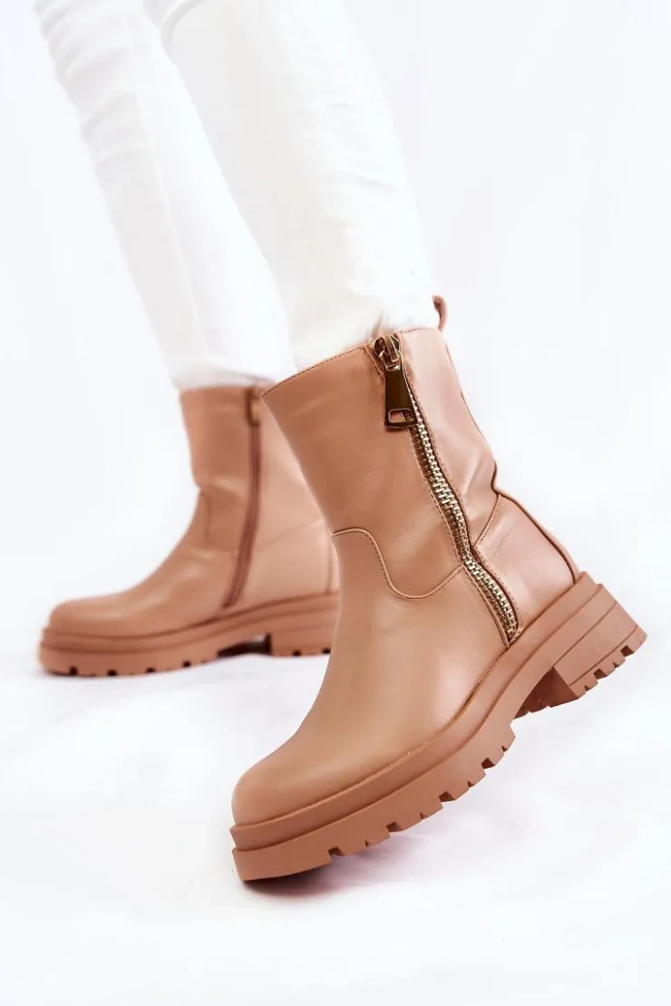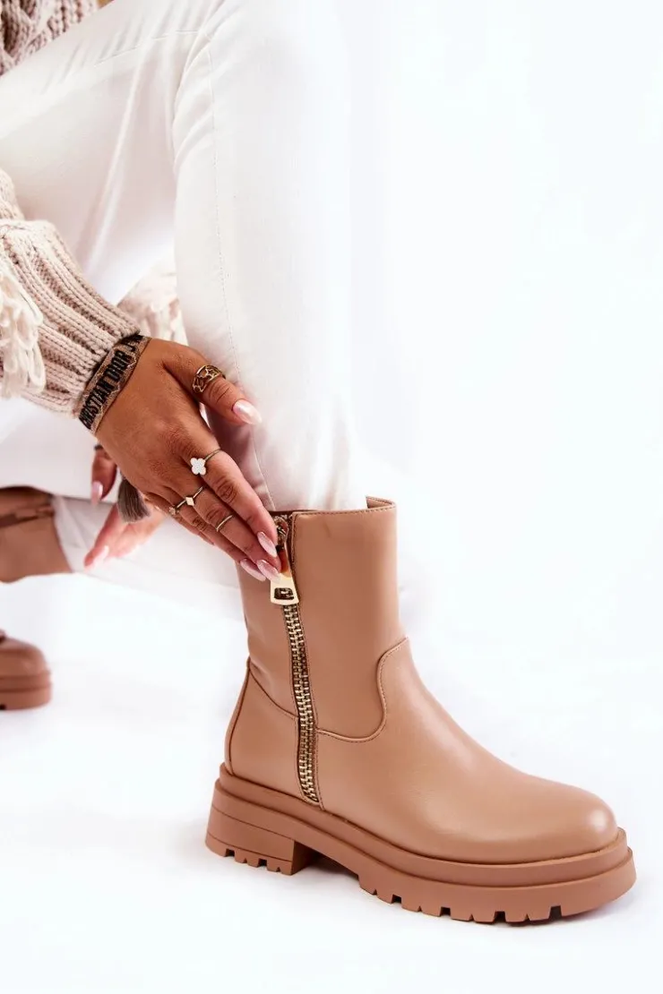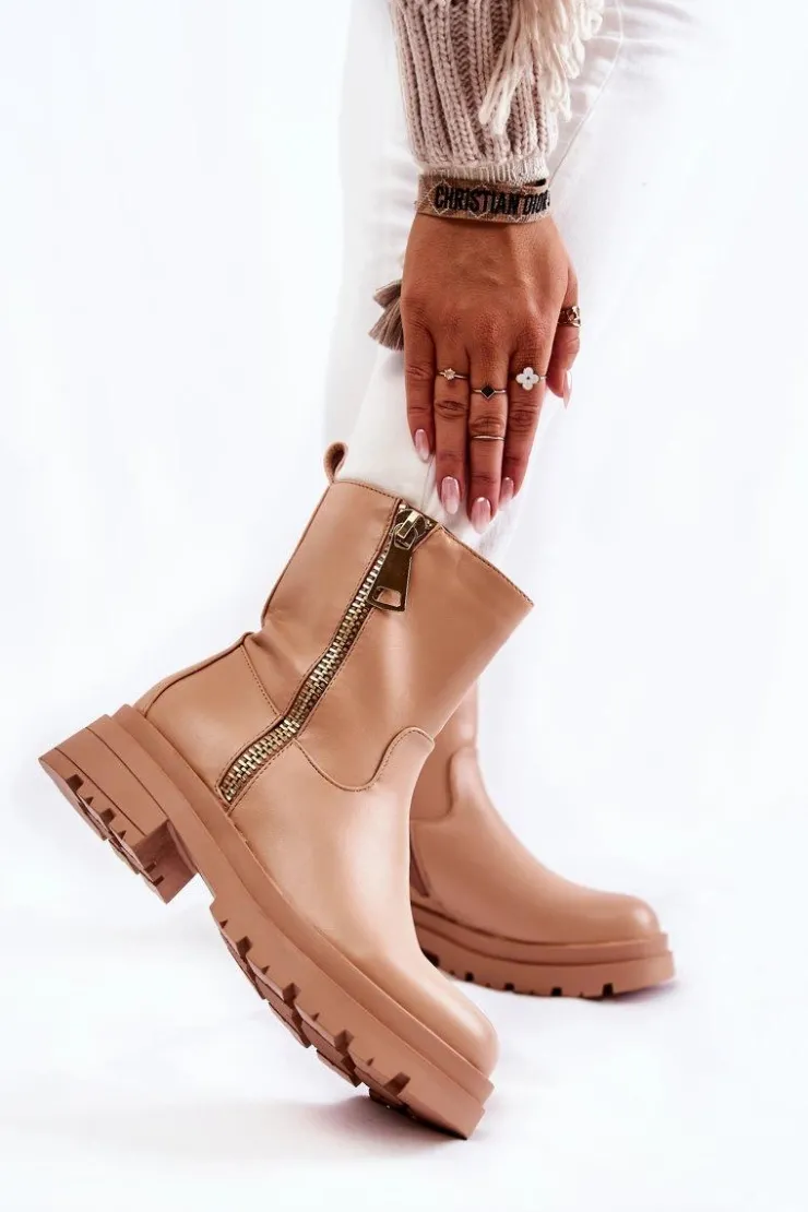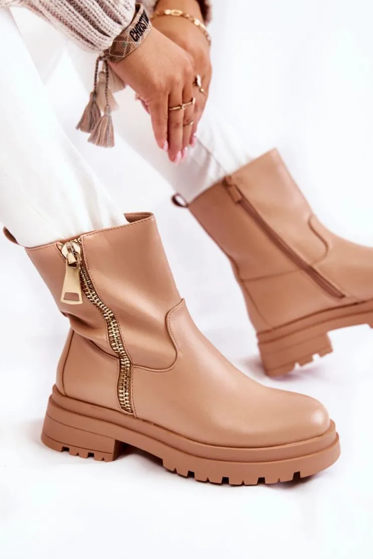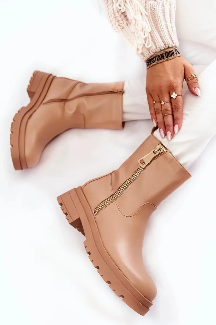 Damskie Boto Damskie Ocieplane Botki Z Suwakami Nude Jette