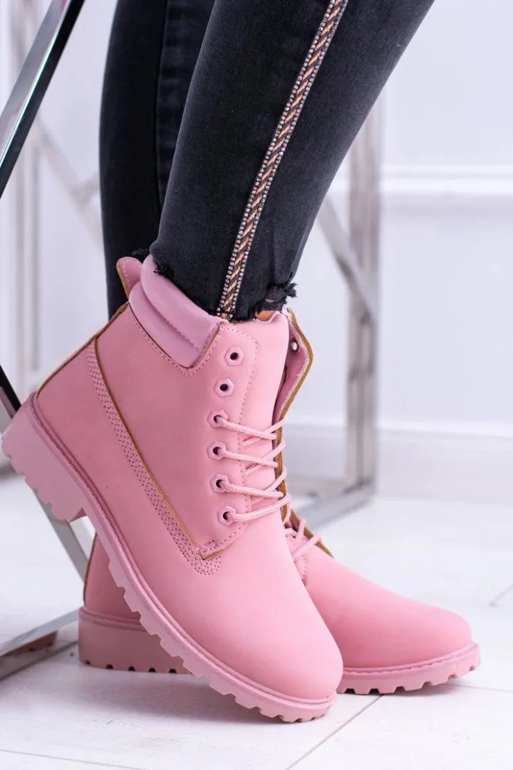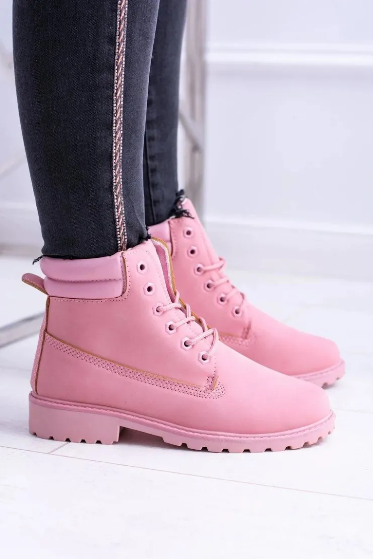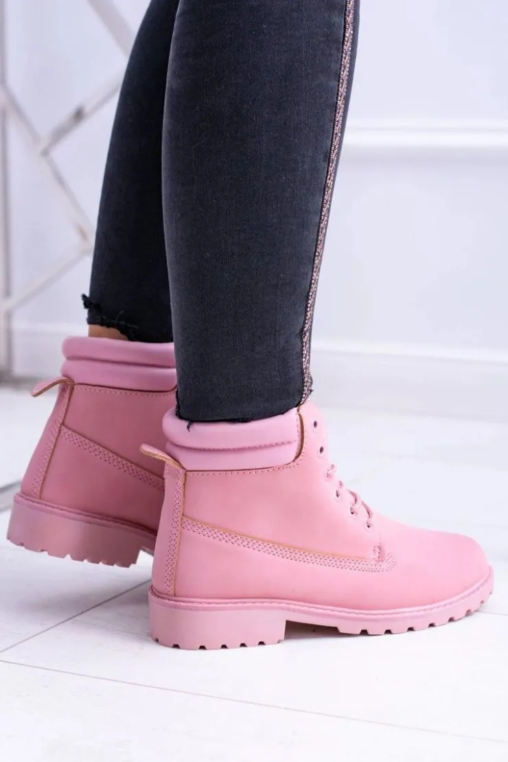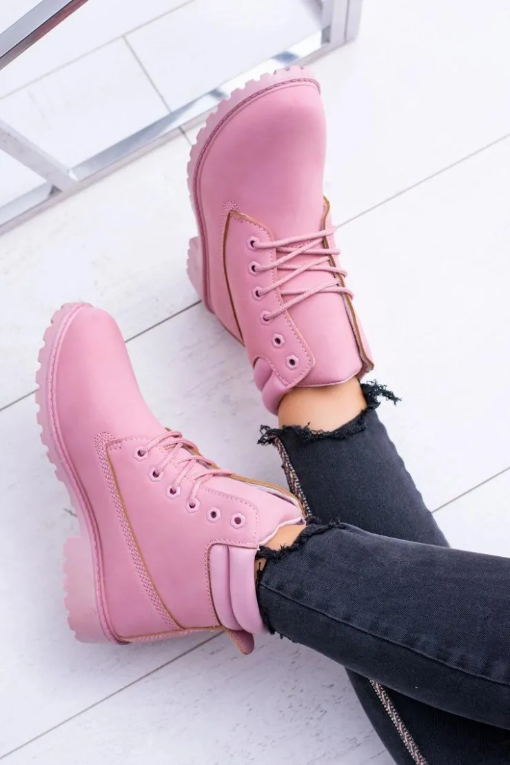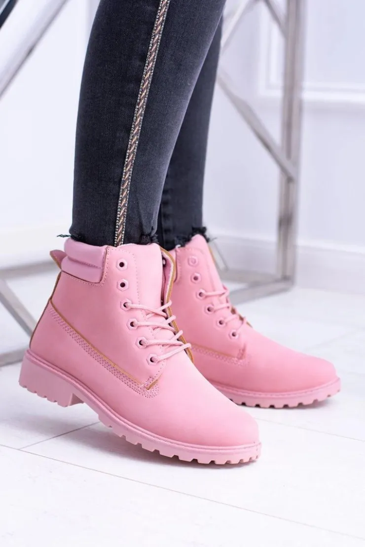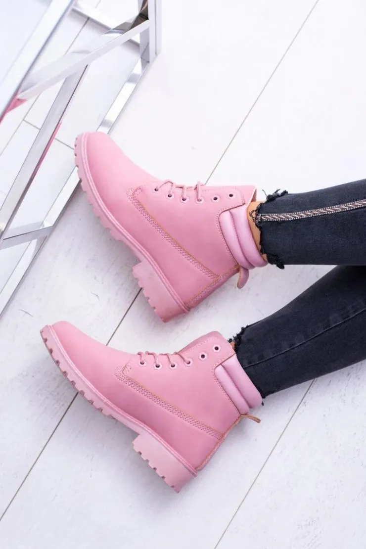 Damskie Boto Damskie Pastelowe Botki Timberki Pudrowy Róż Lucy