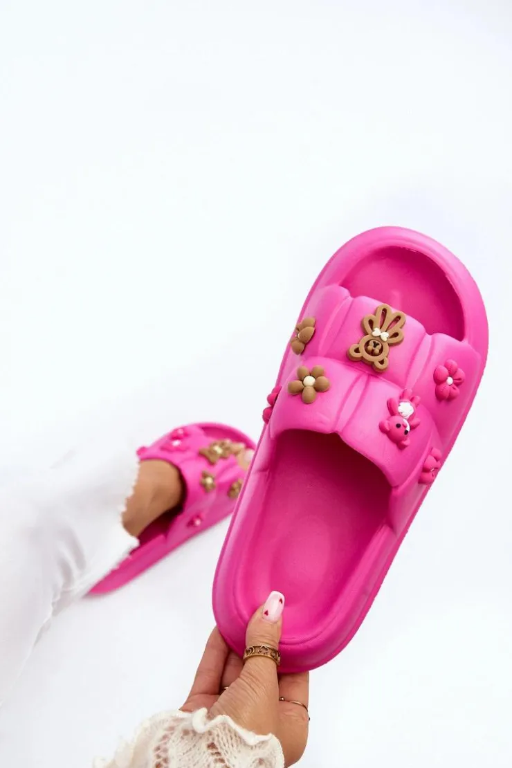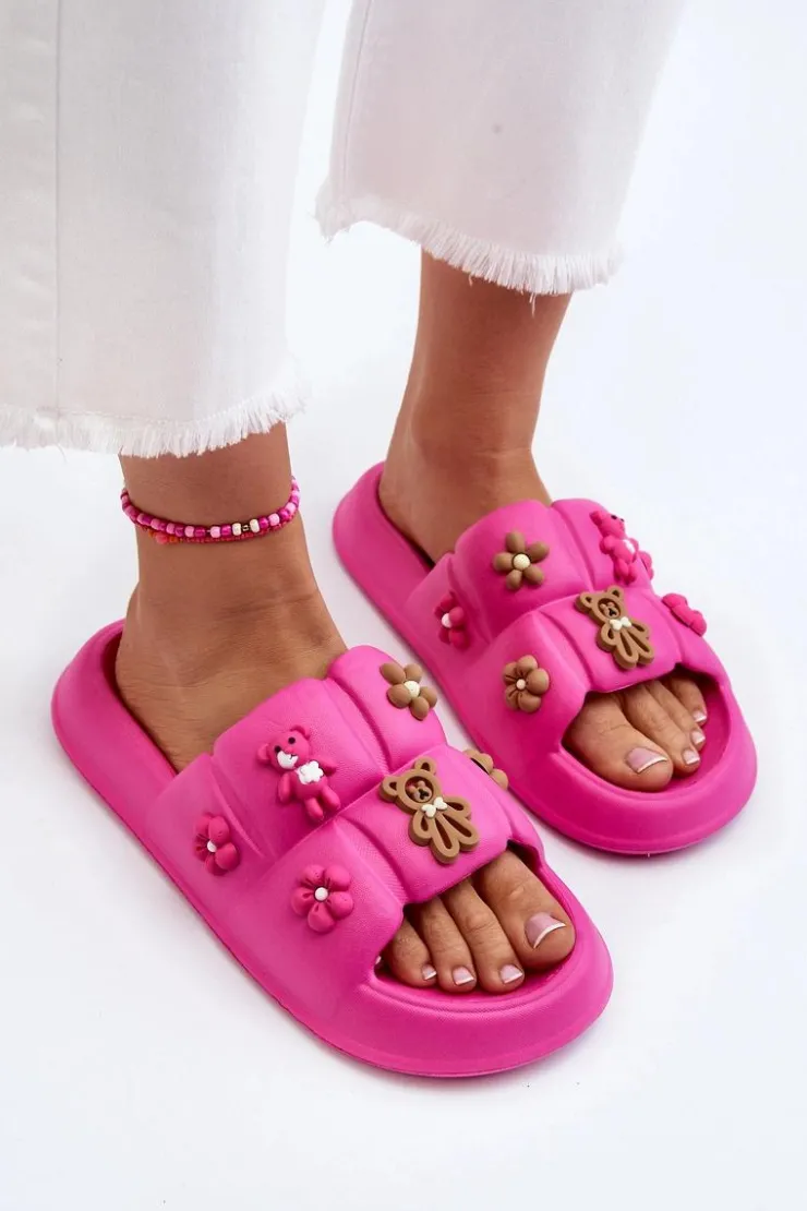 Urocze klapki damskie na szerokim pasku. Wykonane z piankowego tworzywa. Model ten posiada przyciągające uwagę ozdoby z przodu. Idealne do spacerów po plaży lub leniwego popołudnia na tarasie. Koniecznie musisz je mieć! Przy wyborze rozmiaru prosimy sugerować się tabelą rozmiarów.