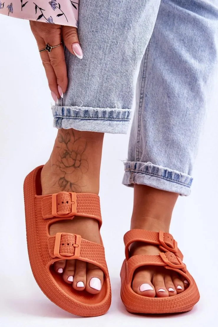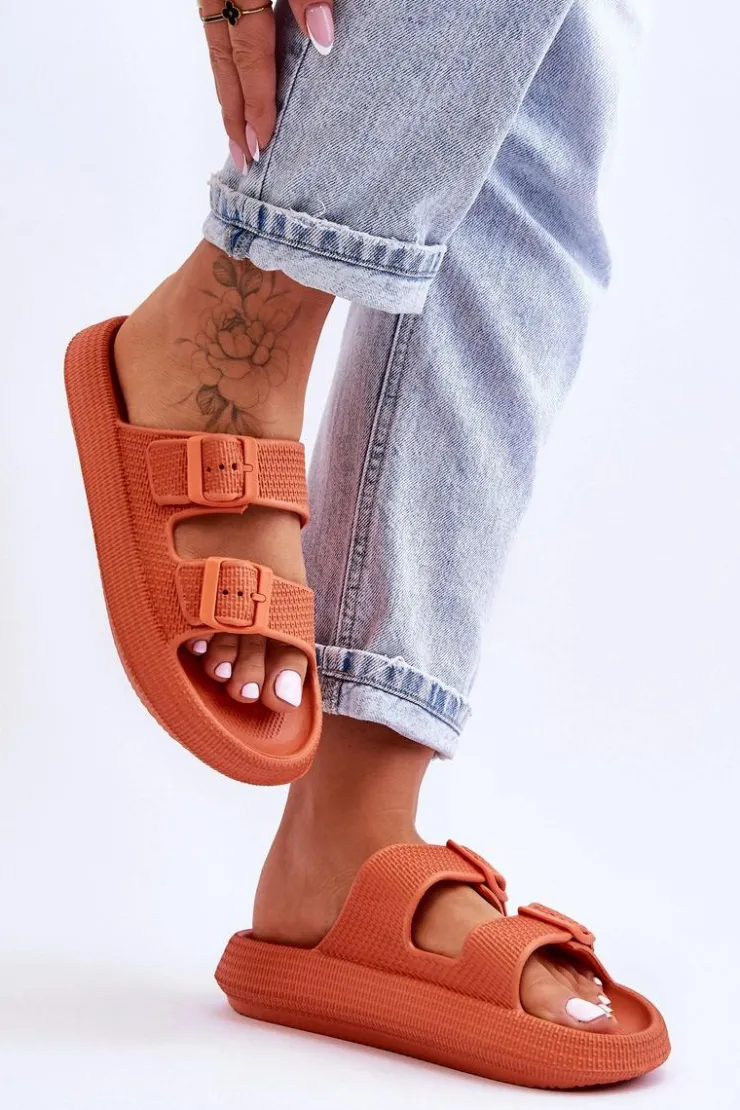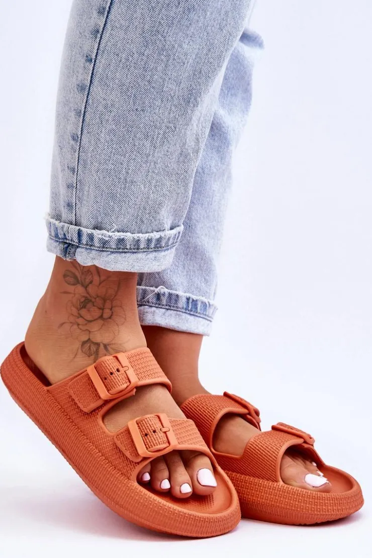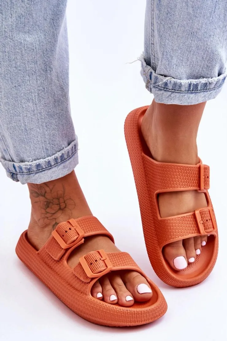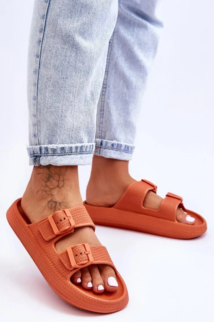 Damskie Boto Damskie Piankowe Klapki Z Paskami Pomarańczowe Sharmen