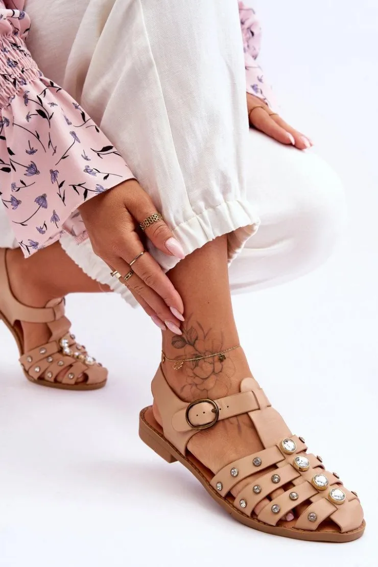 Damskie Boto Damskie Płaskie Sandały Z Cyrkoniami Beżowe Ascot