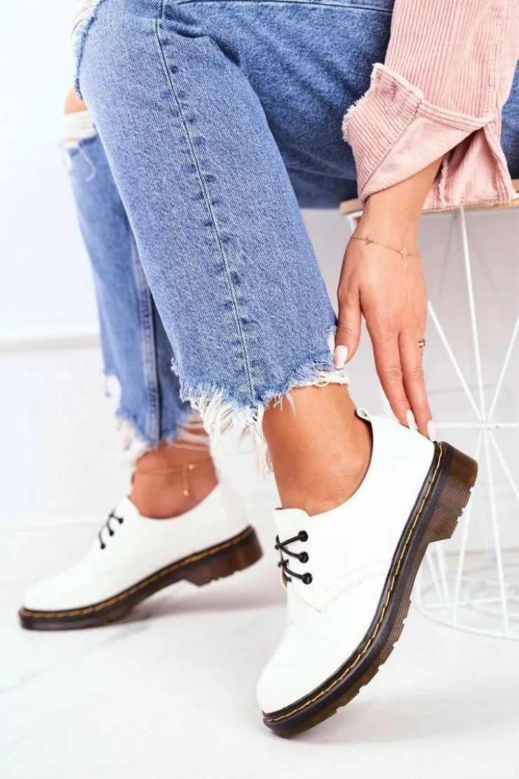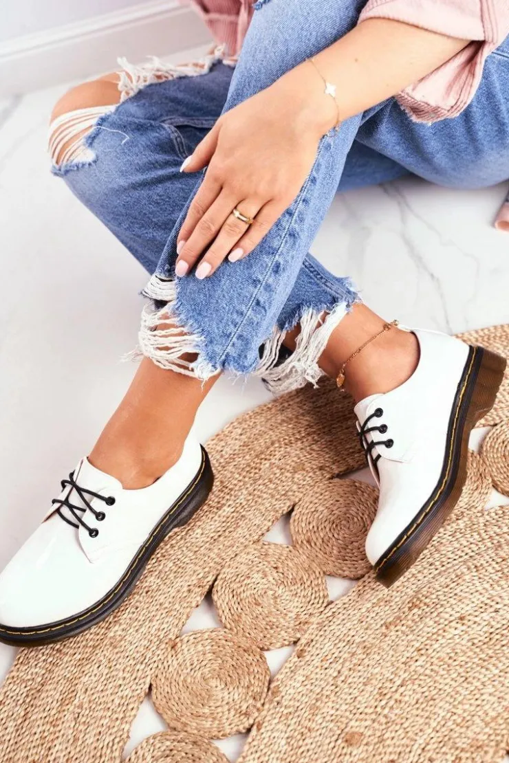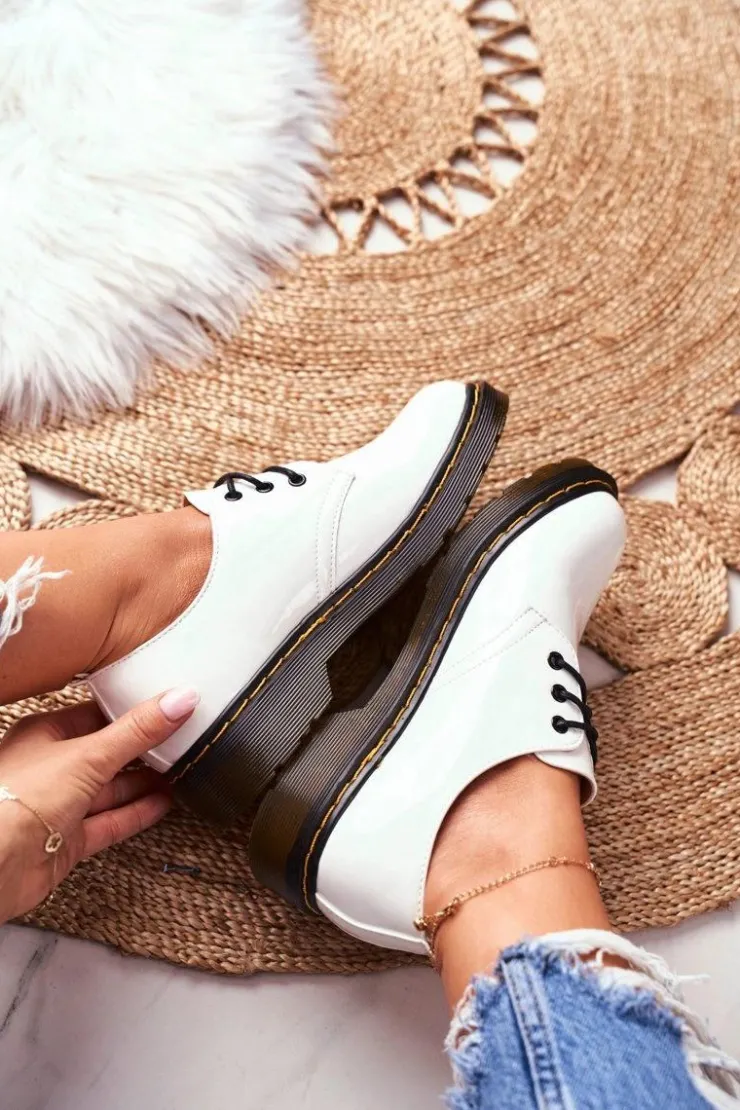 Damskie Boto Damskie Półbuty Lakierowane Białe Do It Better!