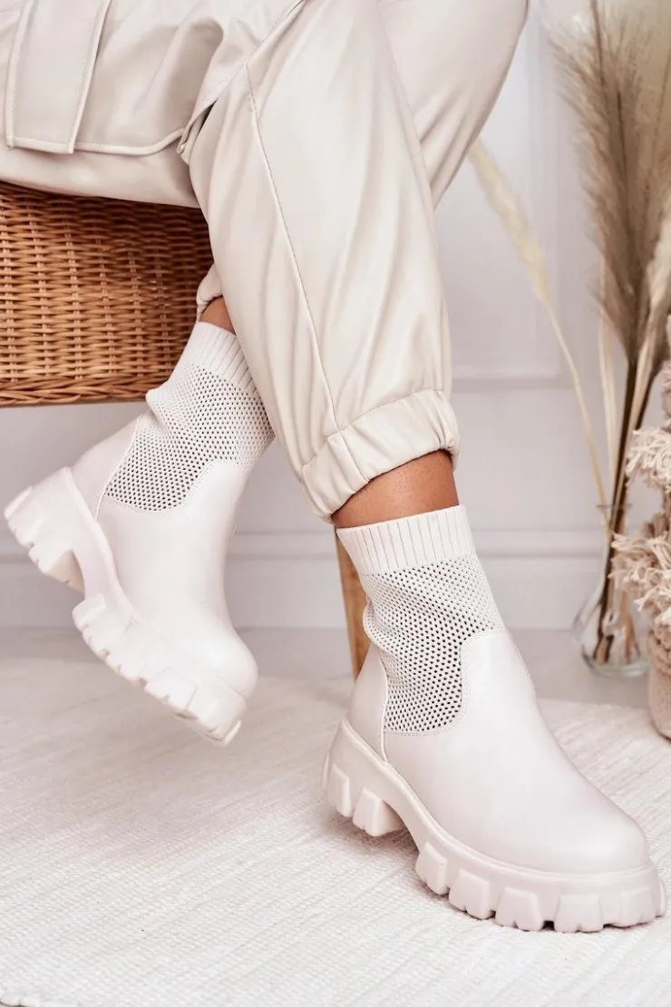 Damskie skarpetkowe botki na platformie. Miękka ażurowa cholewka, oraz masywna podeszwa to 'must have’ w tym sezonie! Buty wykonane są z eko skóry w modnym kolorze. Koniecznie sprawdź całą naszą kolekcję damskich botków. Przy wyborze rozmiaru prosimy sugerować się tabelą rozmiarów.