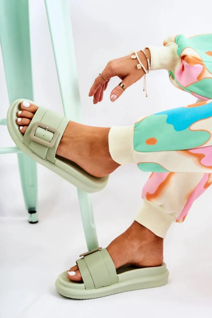 Klasyczne i modne damskie klapki zostały wykonane z eko skóry. Wkładka oraz podeszwa zostały wykonane z gumowego tworzywa. Posiadają sprzączkę na pasku z przodu. Te buty to świetna propozycja dla kobiet ceniących sobie komfort w letnie dni. Buty zostały dodatkowo osadzone na platformie. Koniecznie sprawdź całą naszą ofertę klapek damskich. Przy wyborze rozmiaru prosimy sugerować się tabelą rozmiarów.