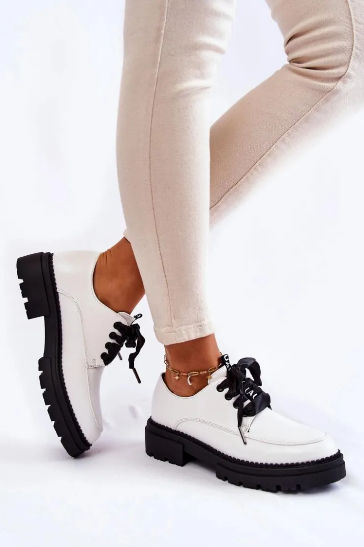 Damskie Boto Damskie Skórzane Półbuty La.Fi 210004W-PU Białe