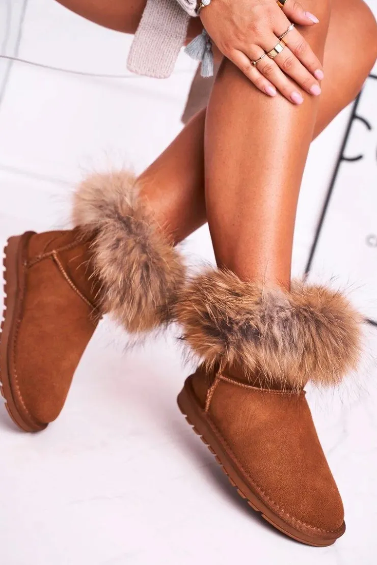 Śniegowce to idealny wybór na chłodne dni. Buty wykonane są z naturalnej skóry zamszowej. Futerko wokół kostki jest naturalne natomiast wnętrze zostało ocieplone grubym eko futerkiem. Koniecznie sprawdź całą naszą kolekcję śniegowców! Przy wyborze rozmiaru prosimy kierować tabelą rozmiarów.