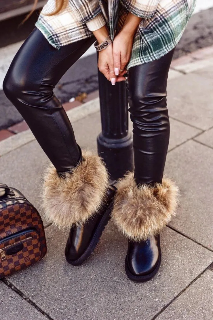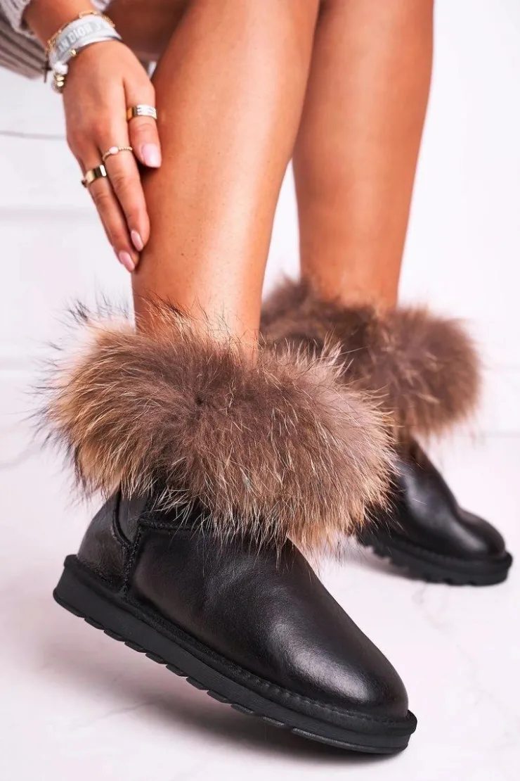 Śniegowce to idealny wybór na chłodne dni. Buty wykonane są z naturalnej skóry zamszowej. Futerko wokół kostki jest naturalne natomiast wnętrze zostało ocieplone grubym eko futerkiem. Koniecznie sprawdź całą naszą kolekcję śniegowców! Przy wyborze rozmiaru prosimy kierować tabelą rozmiarów.