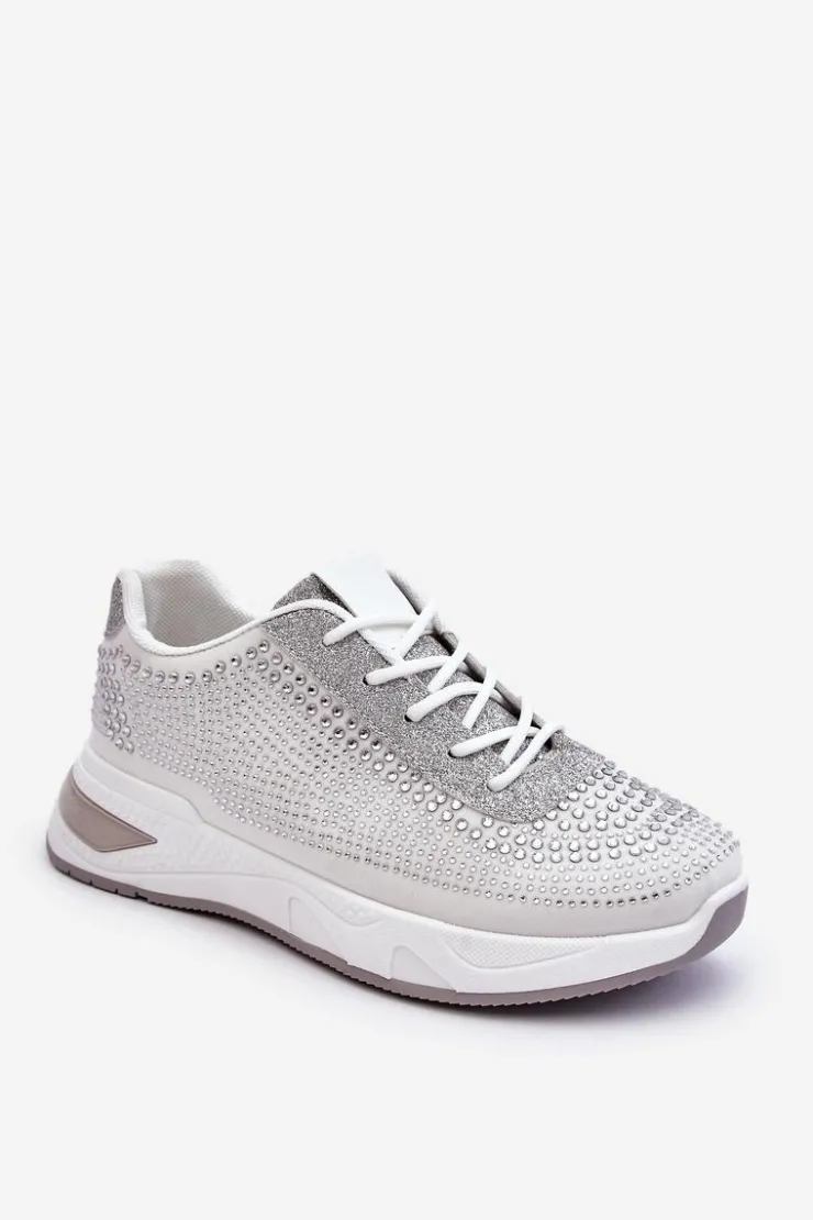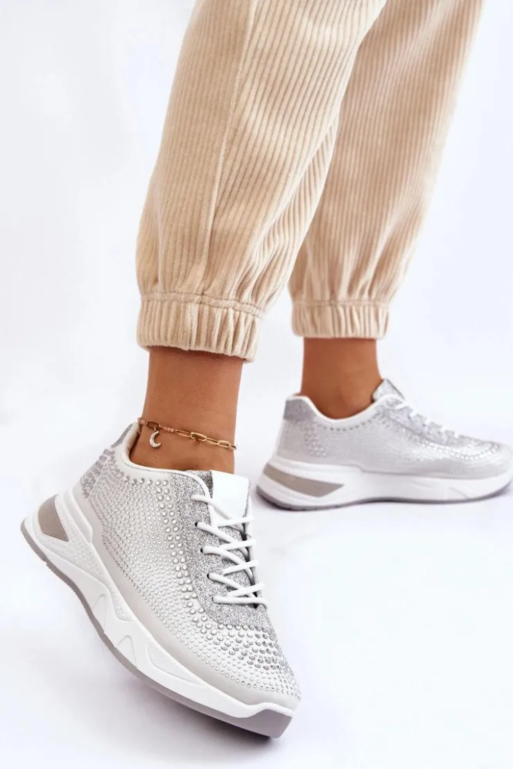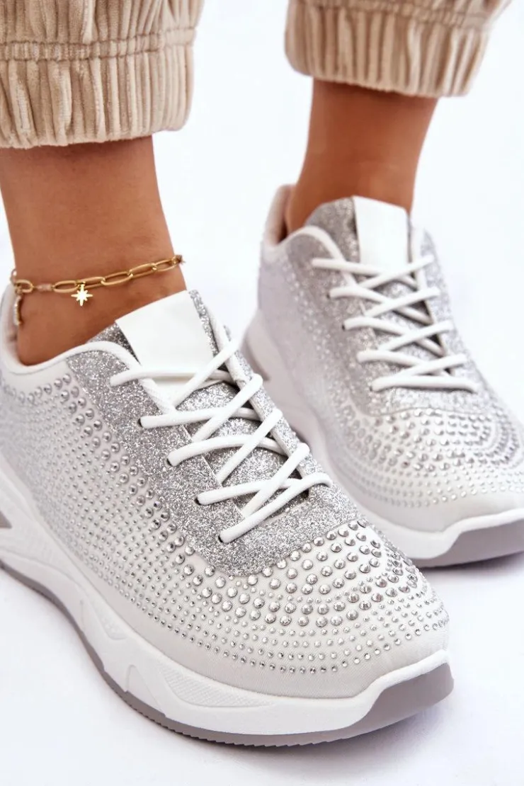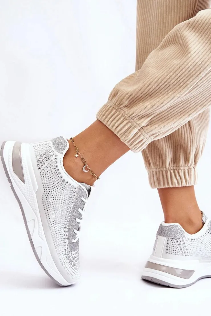 Klasyczne, damskie buty sportowe zostały wykonane z materiału tekstylnego. Dodatkowo posiadają zdobienia w postaci dżetów imitujących cyrkonie. Zostały osadzone na platformie. Model ten posiada klasyczne sznurowanie. Miękka wkładka wykonana z materiału zapewni wygodę podczas użytkowania. Koniecznie powinnaś je mieć! Przy wyborze rozmiaru prosimy kierować się tabelą rozmiarów.