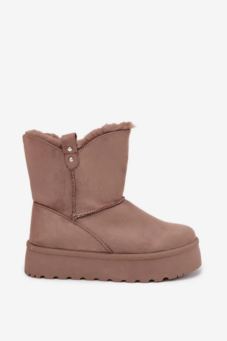 Śniegowce damskie wykonane z eko zamszu. Stylowy fason osadzony na platformie. Ocieplenie futerkiem zapewnia ciepło i komfort nawet w mroźne dni. Doskonałe na chłodne zimowe spacery, te śniegowce będą świetnym akcentem w każdej zimowej stylizacji. Przy wyborze rozmiaru prosimy sugerować się tabelą rozmiarów.