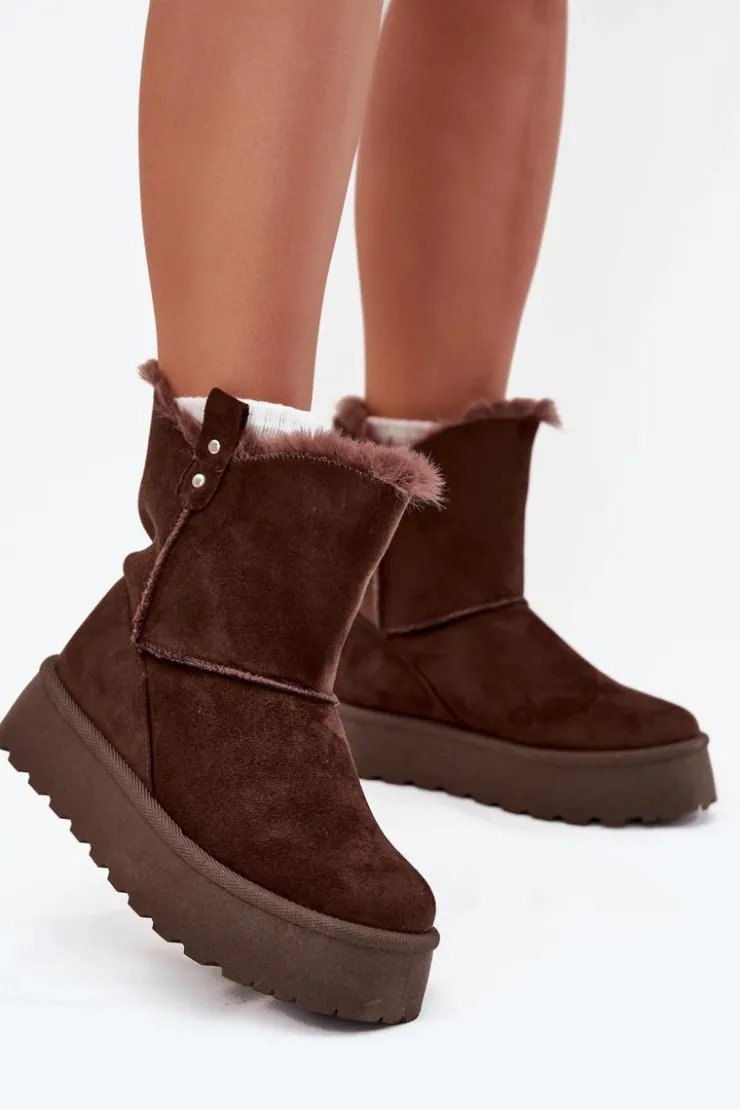 Śniegowce damskie wykonane z eko zamszu. Stylowy fason osadzony na platformie. Ocieplenie futerkiem zapewnia ciepło i komfort nawet w mroźne dni. Doskonałe na chłodne zimowe spacery, te śniegowce będą świetnym akcentem w każdej zimowej stylizacji. Przy wyborze rozmiaru prosimy sugerować się tabelą rozmiarów.
