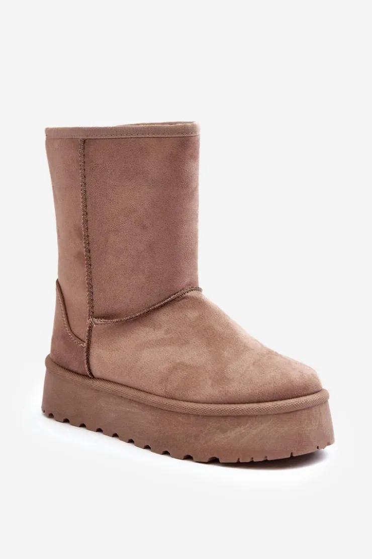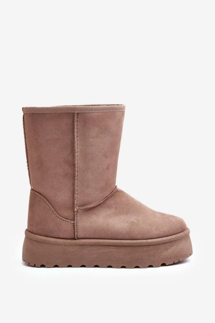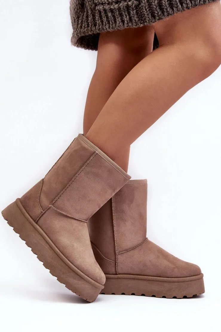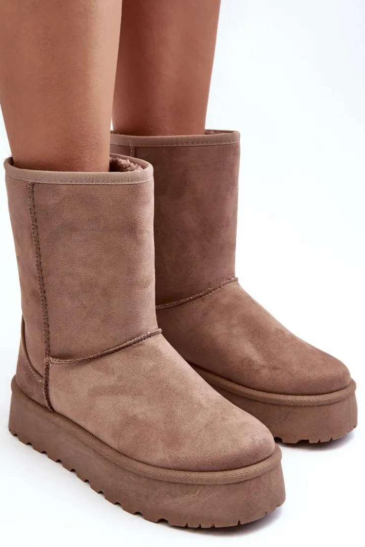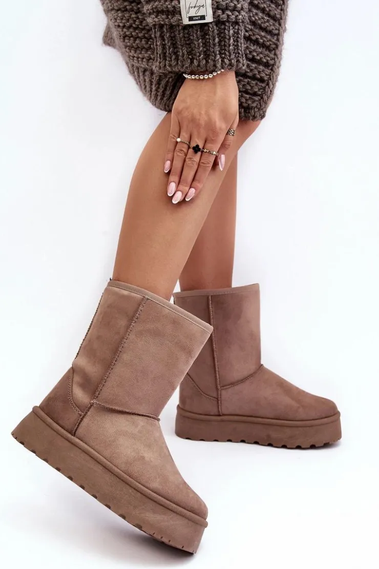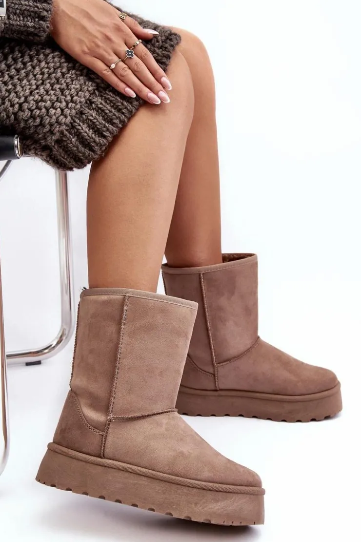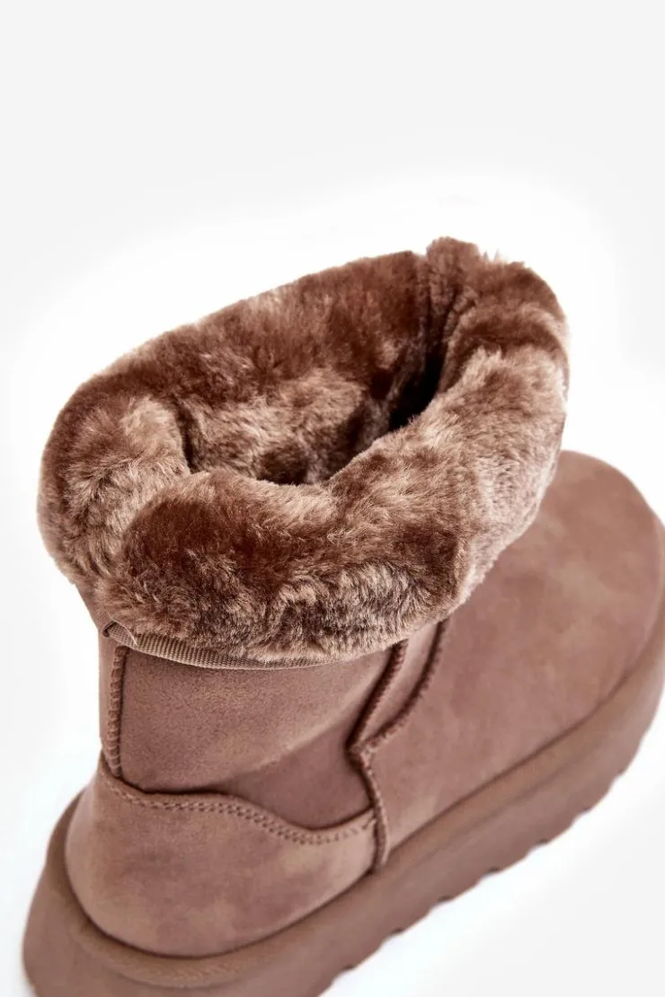 Damskie Boto Damskie Śniegowce Ocieplone Futerkiem Ciemnobeżowe Abrams