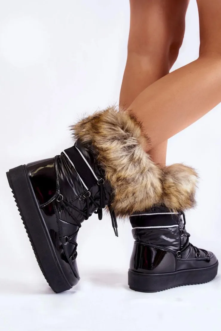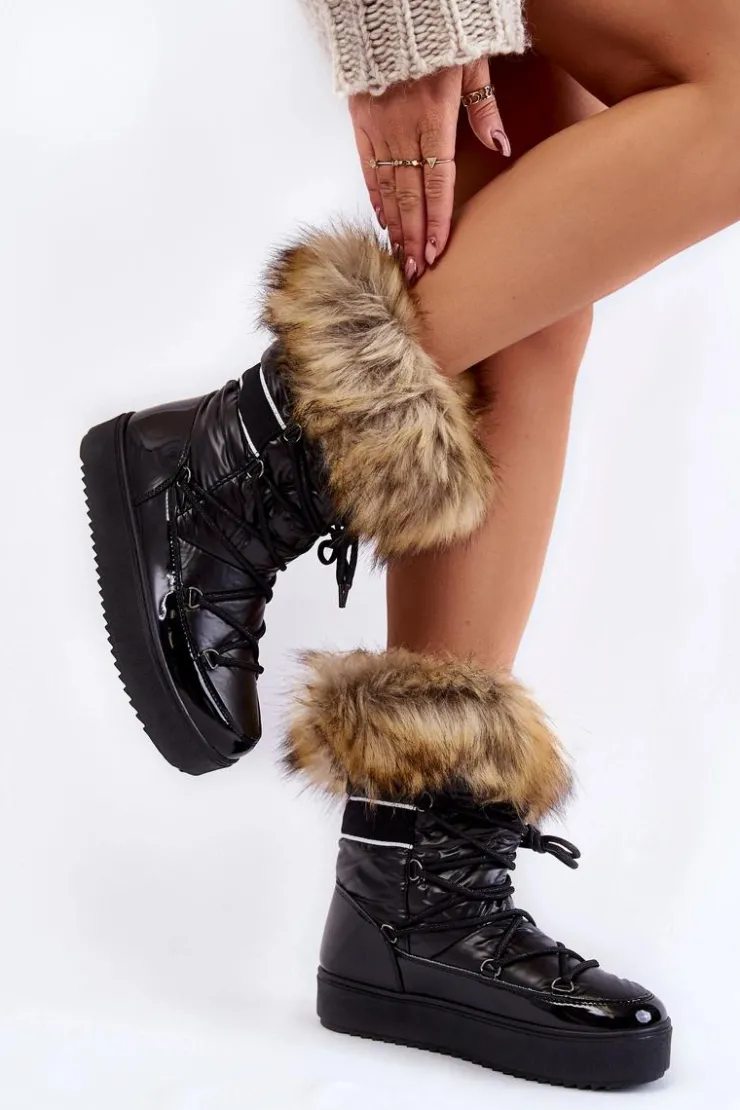 Damskie Boto Damskie Śniegowce Z Futerkiem Sznurowane Czarne Shannon