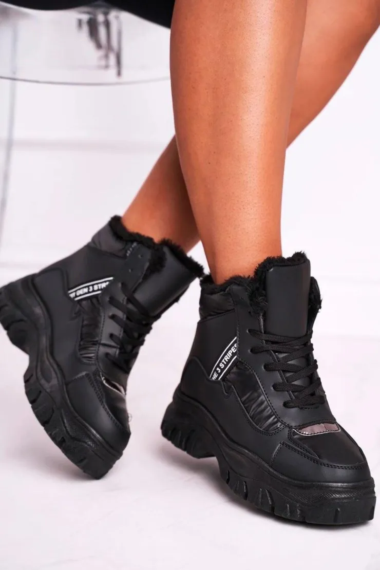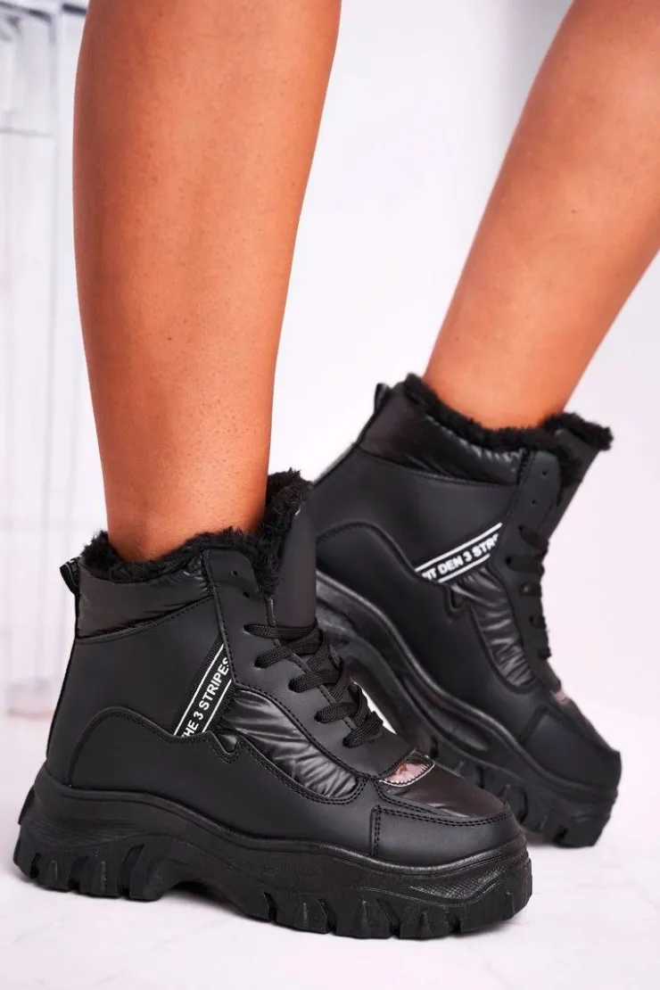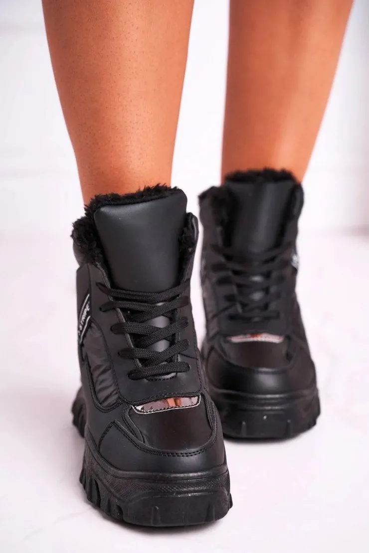 Damskie Boto Damskie Sportowe Śniegowce Z Futerkiem Czarne Euphoria