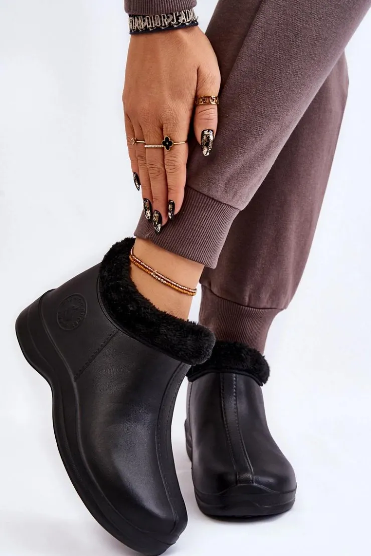 Klasyczne, damskie kalosze zostały wykonane z piankowego tworzywa typu EVA. Model ten został ocieplony eko futerkiem. Buty osadzone na płaskim obcasie oraz delikatnej platformie. Z boku znajduje się ozdobne, tłoczone logo. Idealne na spacery po mokrym podłożu czy do prac w ogrodzie. Przy wyborze rozmiaru prosimy sugerować się tabelą rozmiarów.