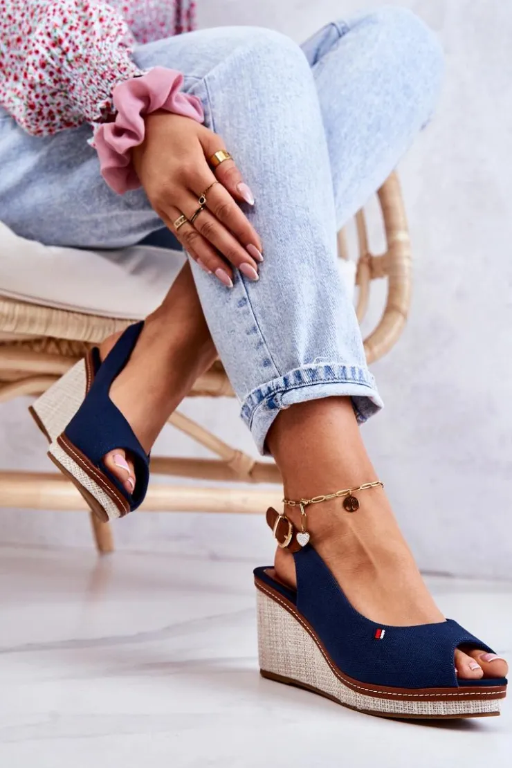 Damskie Boto Damskie Wygodne Sandały Na Koturnie Granatowe Thallas