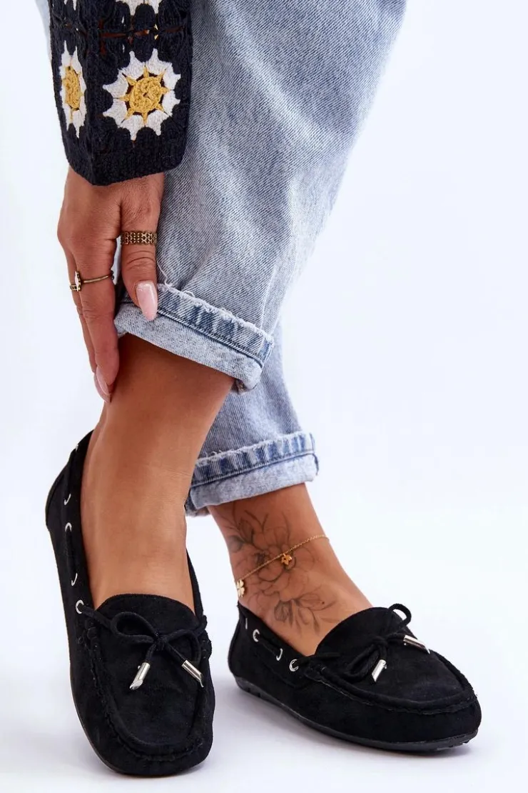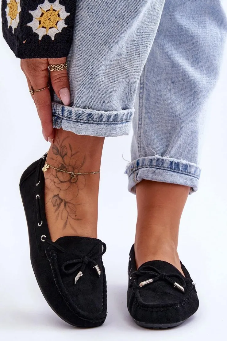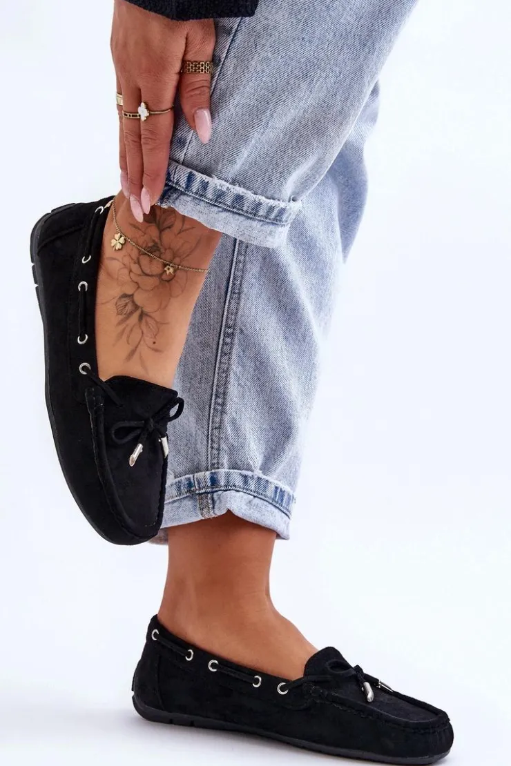 Damskie Boto Damskie Zamszowe Mokasyny Czarne Si Passione