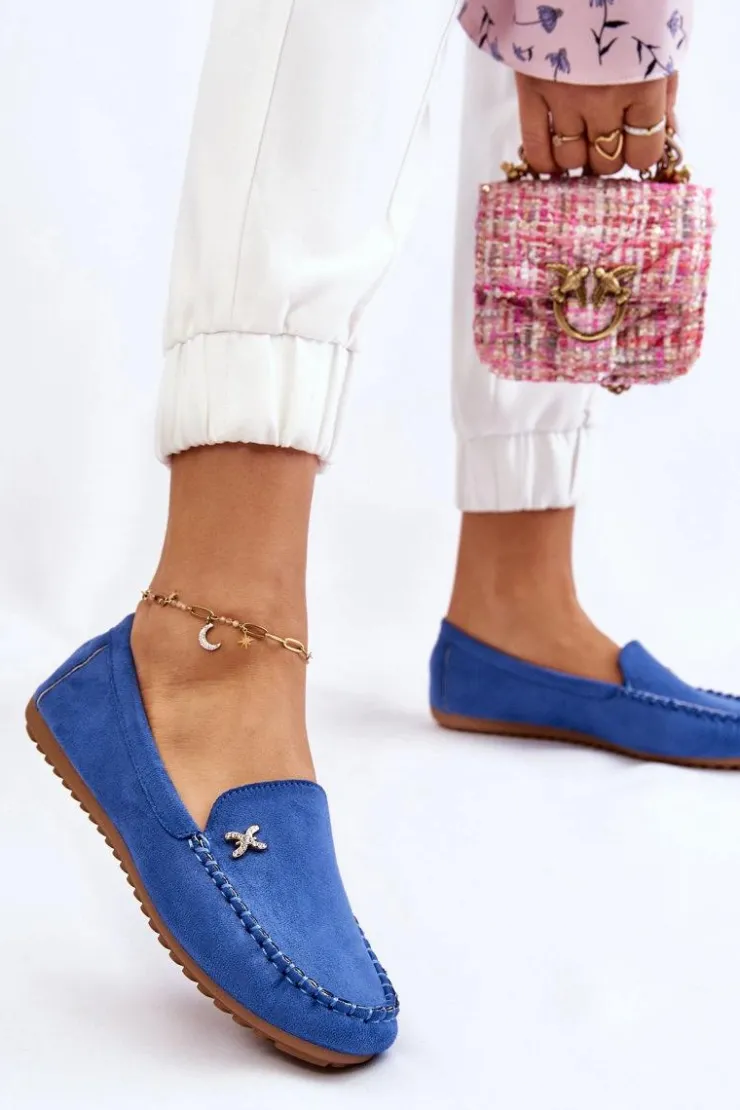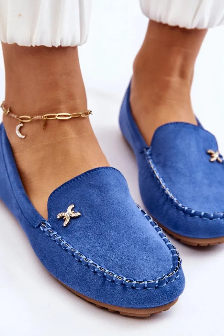 Damskie Boto Damskie Zamszowe Mokasyny Z Ozdobą Niebieskie Leah