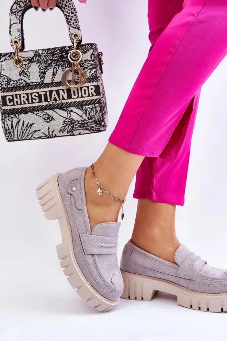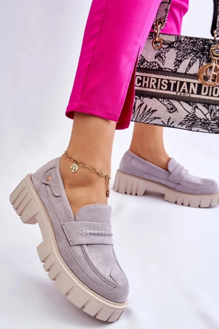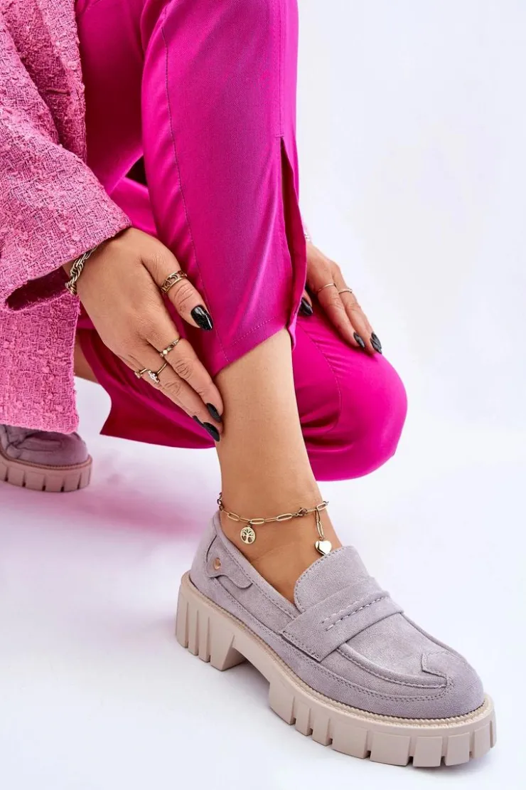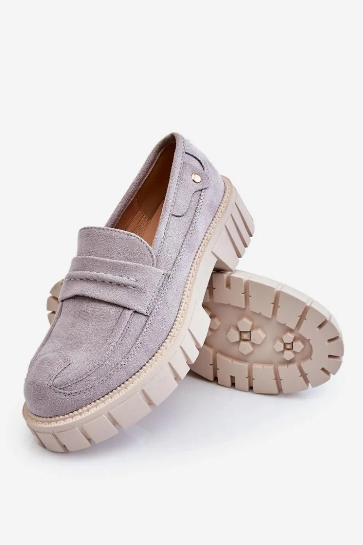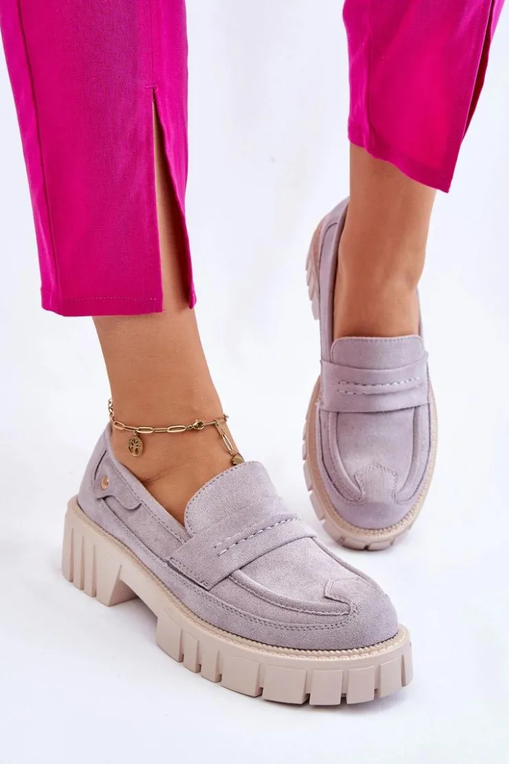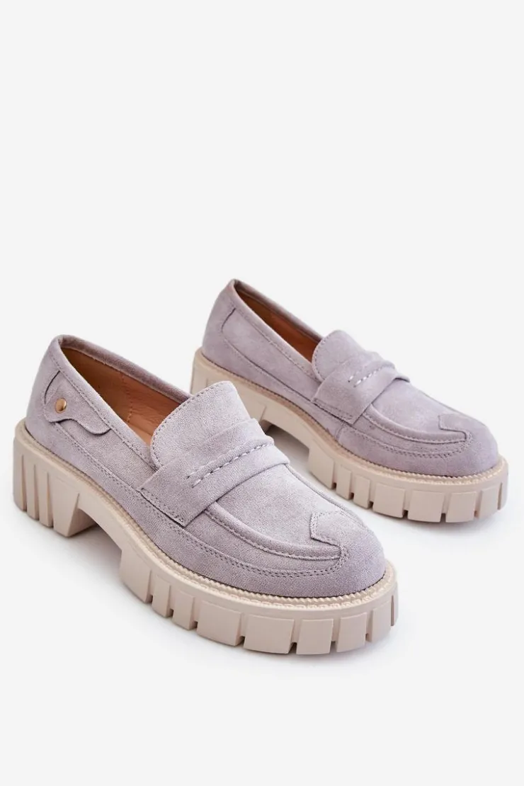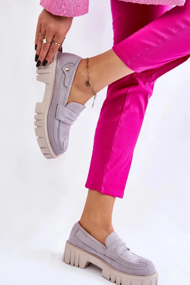 Świetne półbuty w stylu loaferów zostały wykonane z wysokiej jakości eko skóry z obszyciami. Charakterystyczne zdobienie w postaci paseczka na przodzie oraz nitu z boku cholewki. Posiadają masywną platformę oraz płaski obcas. Miękka wykonana z eko skóry wkładka zadba o komfort podczas użytkowania obuwia. Dodatkowo zapiętek jest usztywniany. Przy wyborze rozmiaru prosimy sugerować się tabelą rozmiarów.