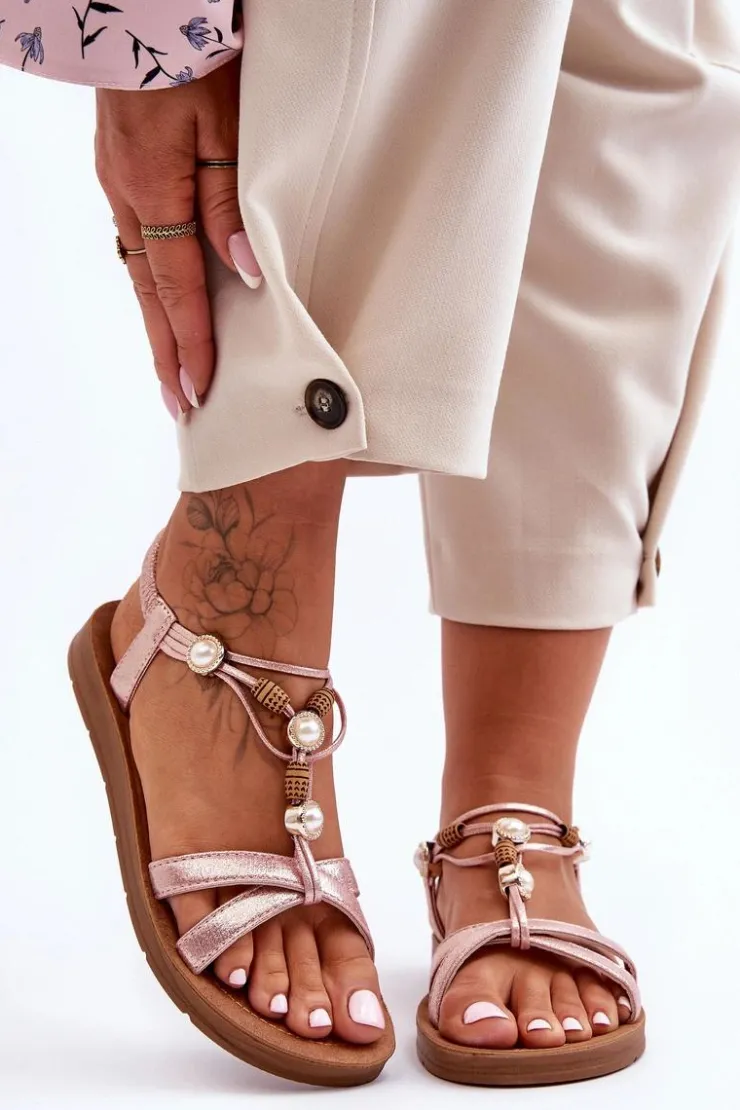 Wygodne, błyszczące damskie sandały ozdobione koralikami. Idealne na upalne dni! Delikatna platforma świetnie sprawdzi się także podczas wycieczek po piaszczystej plaży czy spacerze po mieście. Wykonane z materiału tekstylnego. Koniecznie sprawdź pozostałe modele damskich sandałek! Przy wyborze rozmiaru prosimy sugerować się tabelą rozmiarów.