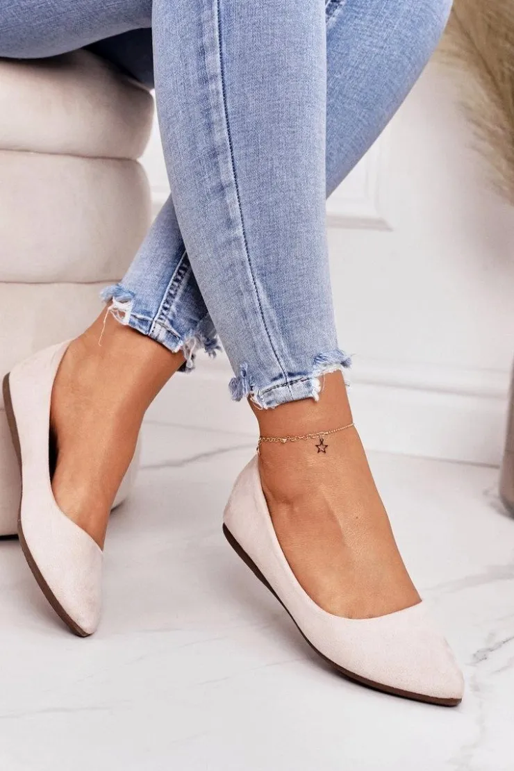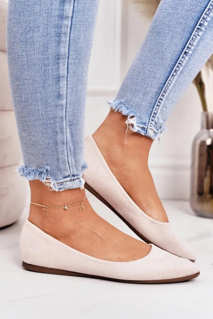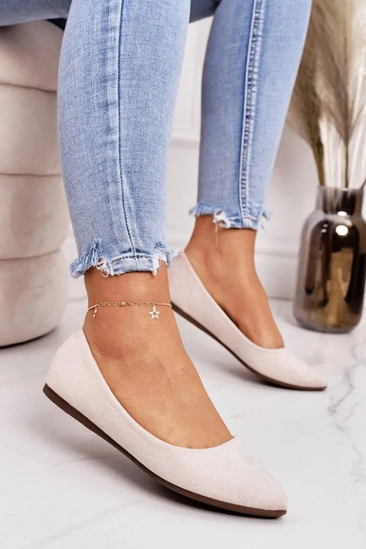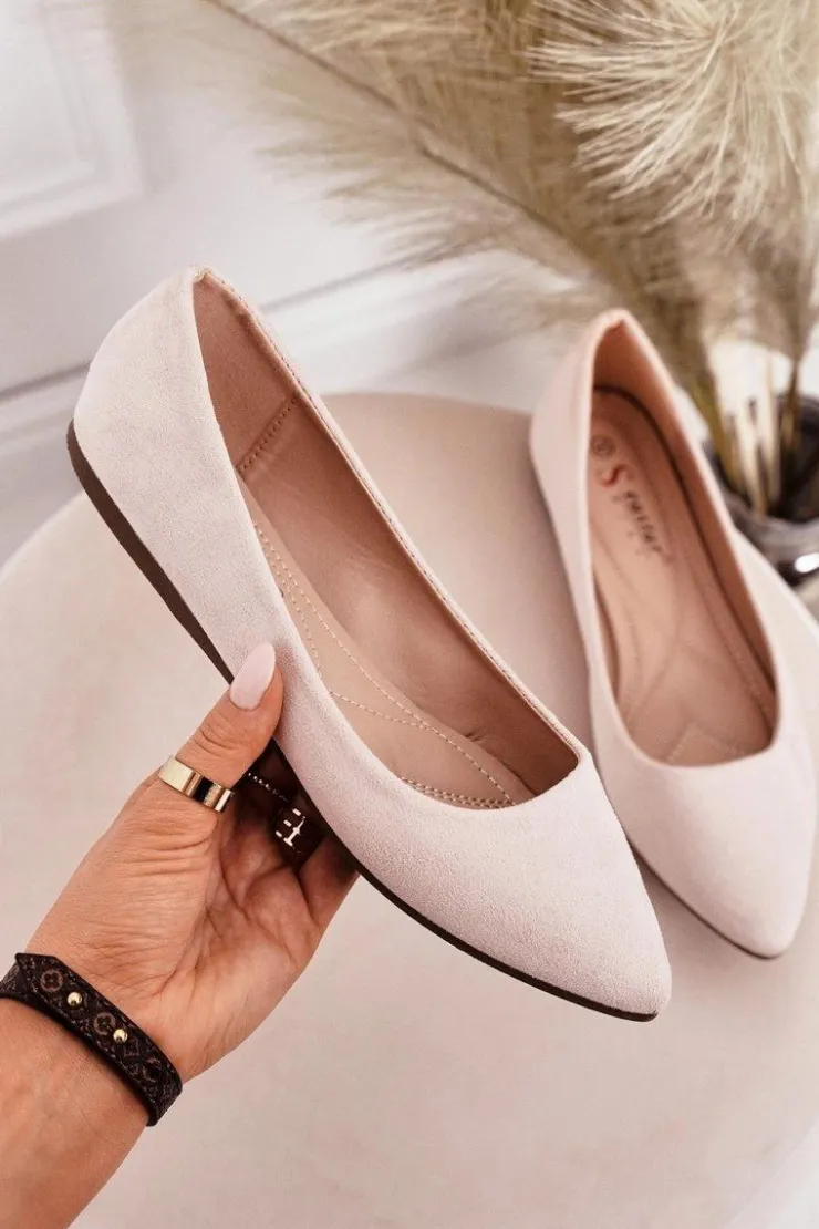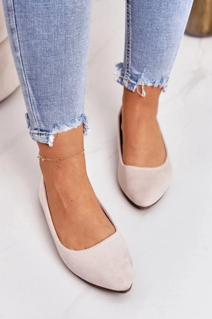 Damskie Boto Delikatne Baleriny W Szpic Zamszowe Beżowe Dermeno