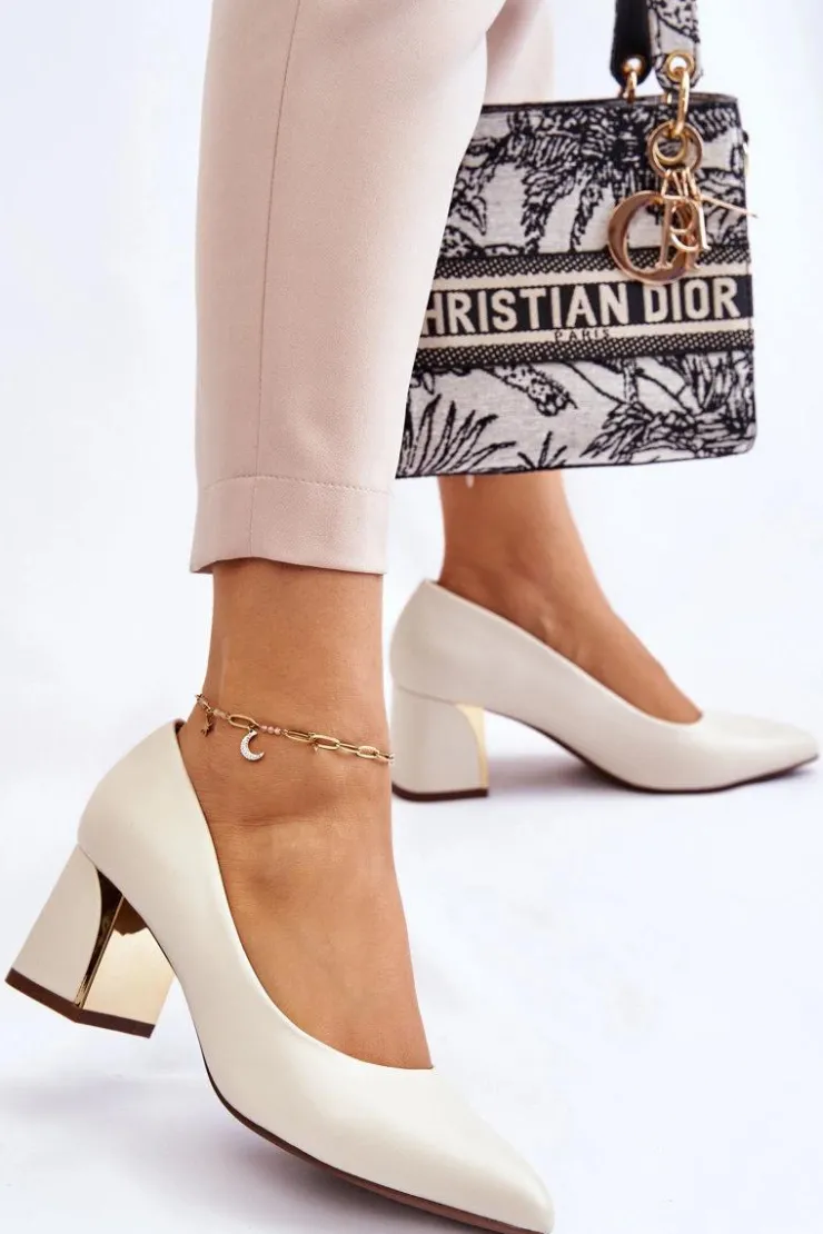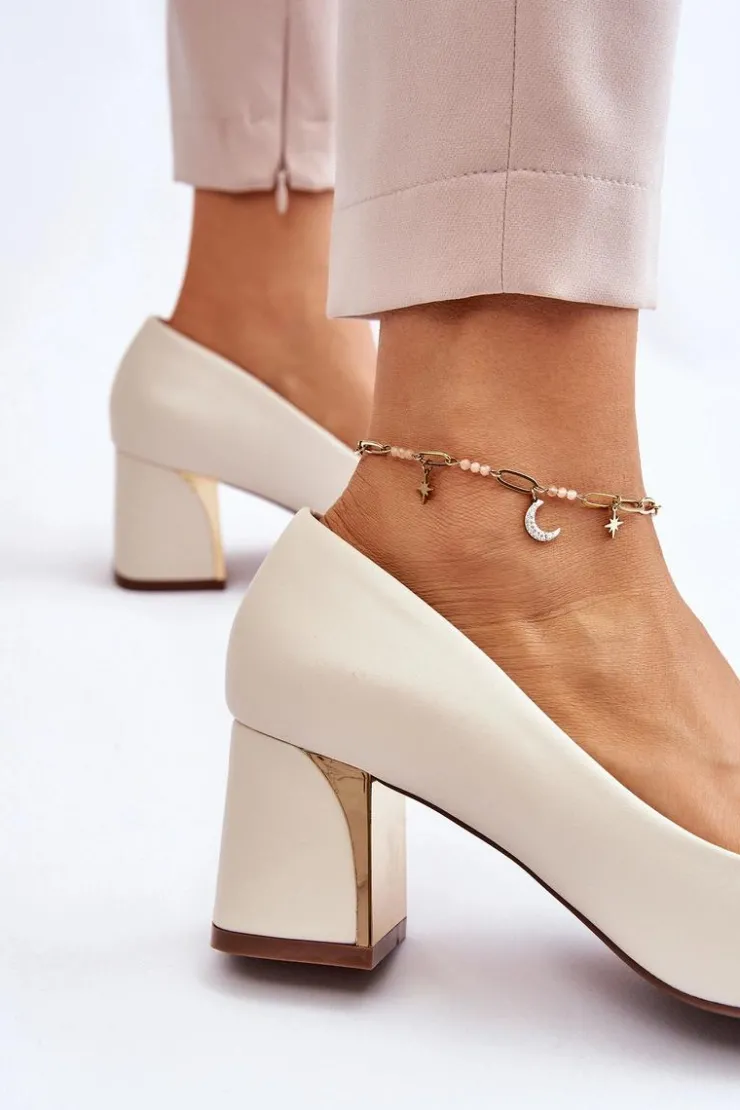 Te piękne czółenka zostały osadzone na obcasie w postaci stabilnego słupka ozdobionego lustrzanym elementem. Miękka wkładka zapewni komfortowe użytkowanie. Cholewka została wykonana ze skóry ekologicznej. Charakterystyczny nosek w szpic. Idealny model do pracy, na randkę czy biznesowe spotkania. Koniecznie musisz je mieć! Przy wyborze rozmiaru prosimy sugerować się tabelą rozmiarów.
