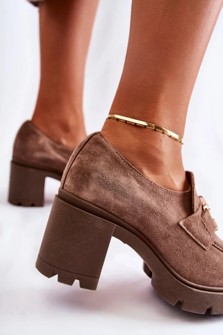 Damskie Boto Eleganckie Półbuty Na Słupku Ze Złotą Ozdobą Ciemnobeżowe Lemar Harmell