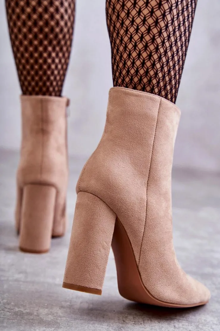 Wyjątkowe botki damskie osadzone na obcasie w postaci słupka. Model z cholewką za kostkę. Wykonane z przyjemnego w dotyku eko zamszu. Ocieplone w środku kocem obuwniczym. Botki te posiadają usztywniany zapiętek. Model ten zachwyci niejedną miłośniczkę wysokich obcasów! Koniecznie powinnaś mieć je w swojej szafie! Przy wyborze rozmiaru prosimy sugerować się tabelą rozmiarów.
