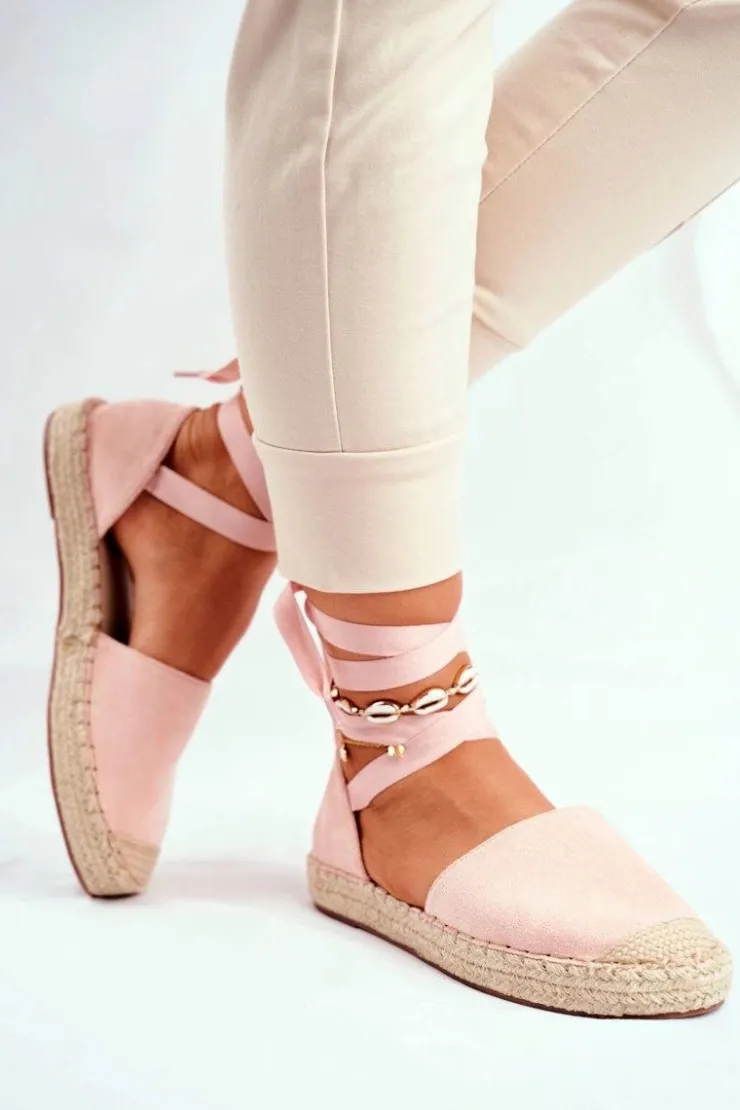 Damskie Boto Espadryle Damskie Wiązane Lniane Różowe Bonjour