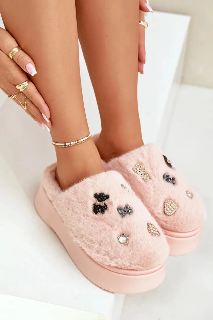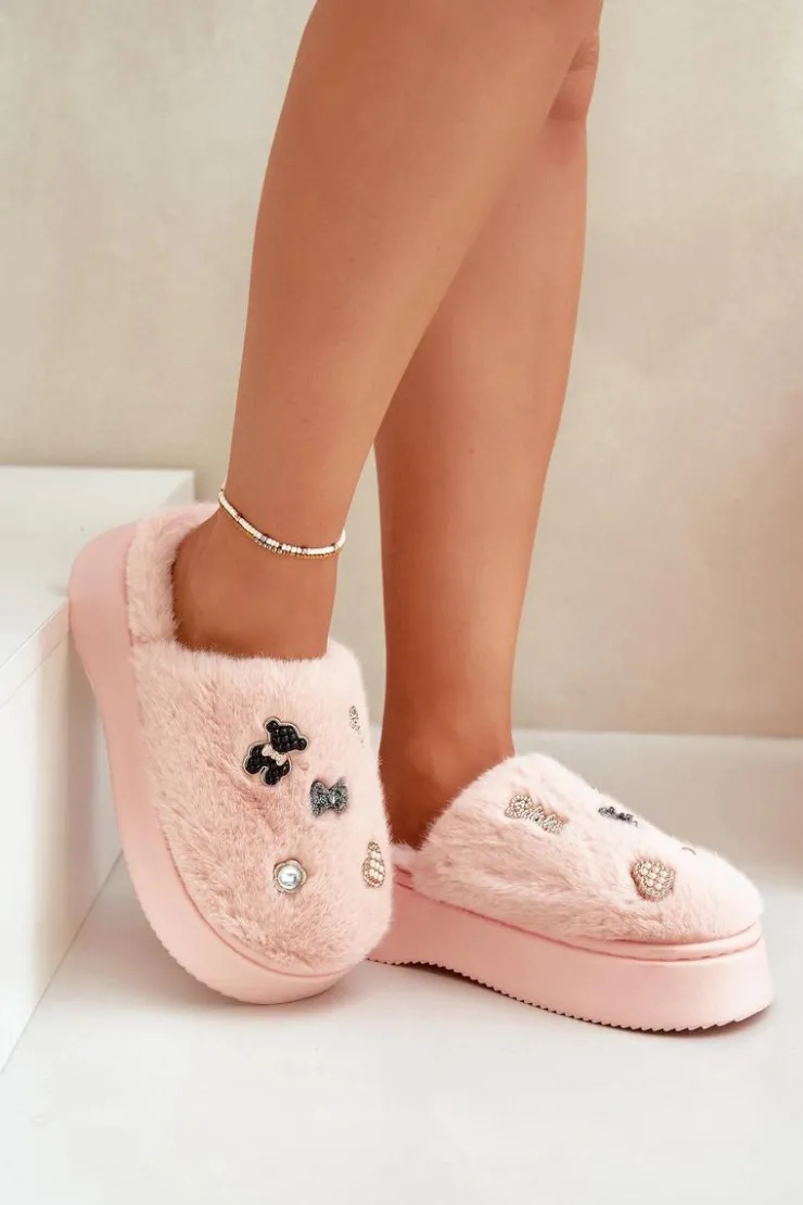 Futrzane kapcie damskie na grubej podeszwie to idealne połączenie stylu i komfortu. Wykonane z miękkiego, przytulnego futerka, zapewniają ciepło i wygodę na chłodne dni. Zakryte noski dodatkowo chronią stopy przed zimnem, a urocze przypinki dodają im wyjątkowego, modnego charakteru. Doskonałe zarówno do domowego relaksu, jak i na szybkie wyjścia na zewnątrz. Przy wyborze rozmiaru prosimy sugerować się tabelą rozmiarów.