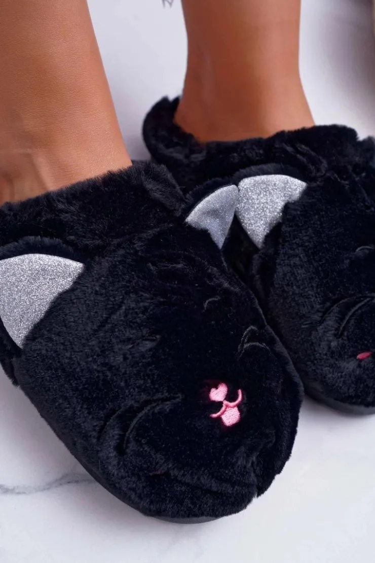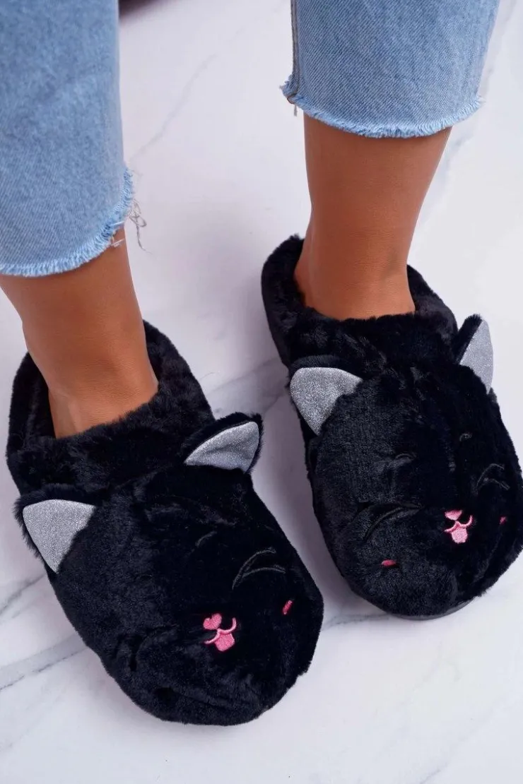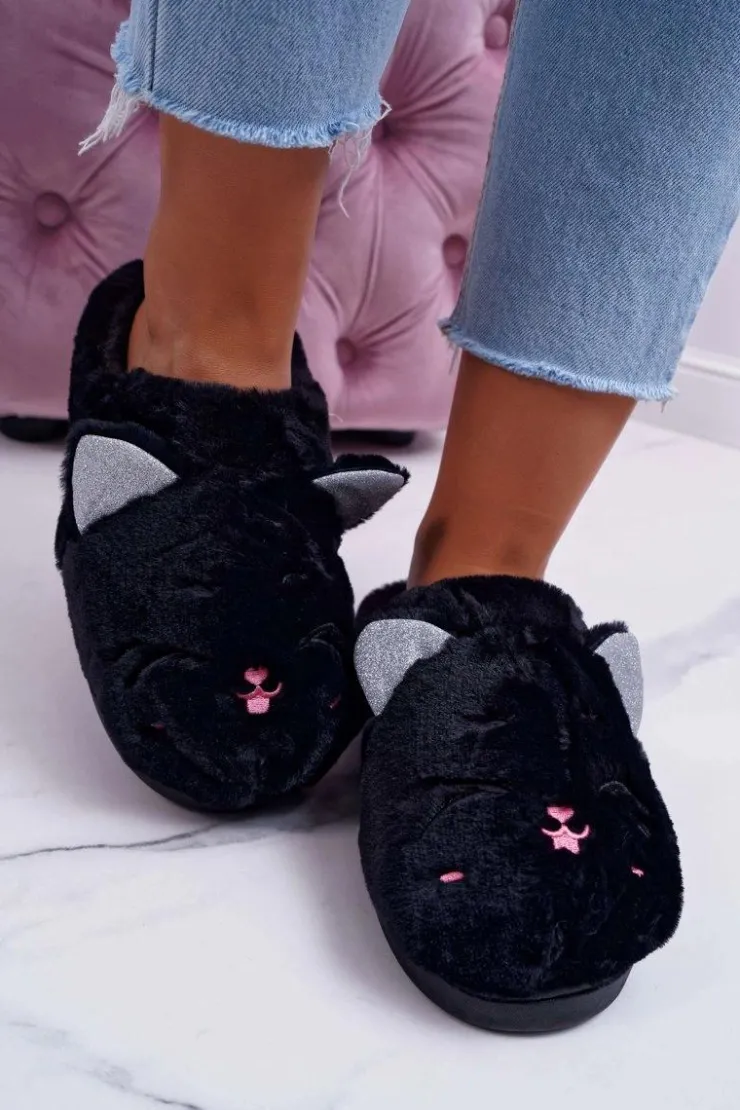 Damskie Boto Kapcie Damskie Kotki z Uszami Czarne Sleppyhead