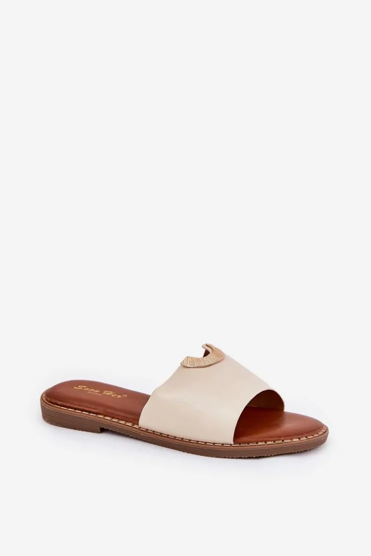 Klapki damskie na płaskim obcasie to idealny wybór na letnie dni. Wykonane z ekologicznej skóry. Klasyczny fason wzbogacony został o ozdobne detale, które nadają im eleganckiego charakteru. Doskonałe zarówno na co dzień, jak i na letnie spacery. Świetnie komponują się z sukienkami, spódnicami oraz spodniami, dodając stylowego akcentu każdej stylizacji. Przy wyborze rozmiaru prosimy sugerować się tabelą rozmiarów.